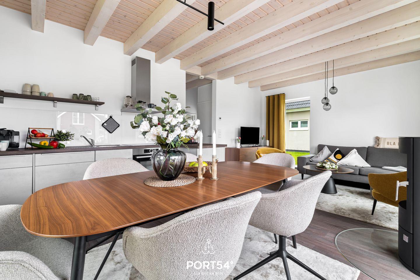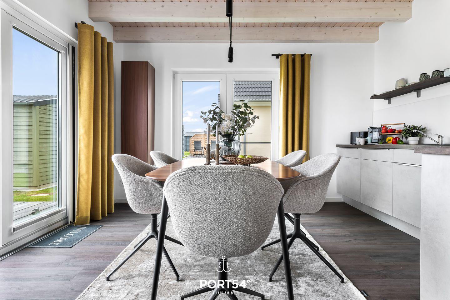 Es erwarten Sie auf 107m² offene, helle Räumlichkeiten in einem gemütlichen Ambiente. Von der voll ausgestatteten Küche mit Essbereich gelangen Sie auf die Terrasse, hier können Sie die Ruhe genießen. Der gemütliche Wohnbereich bietet Ihnen ein gemütliches Sofa. In 2 der drei Schlafzimmern finden Sie ein Doppelbett vor & im dritten finden Sie 2 Einzelbetten vor. Das Badezimmer im EG verfügt über eine ebenerdigen Dusche & eine Infrarot-Sauna. Das Bad im OG bietet Ihnen eine Badewanne.