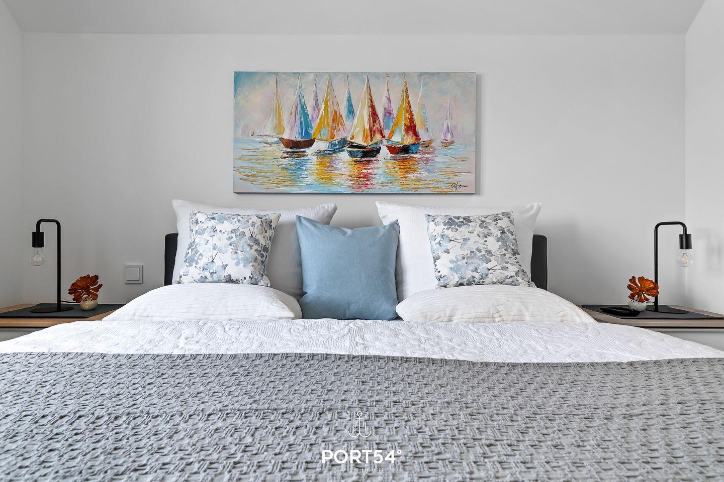 Die beiden Schlafzimmer sind mit hochwertigen Boxspringbetten ausgestattet. Davon hat eins