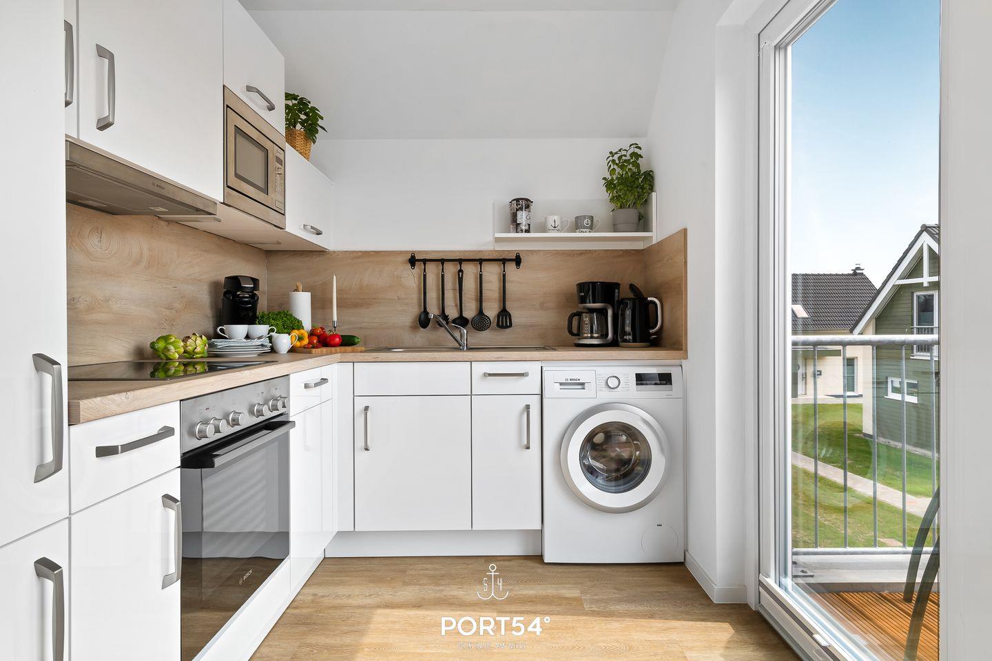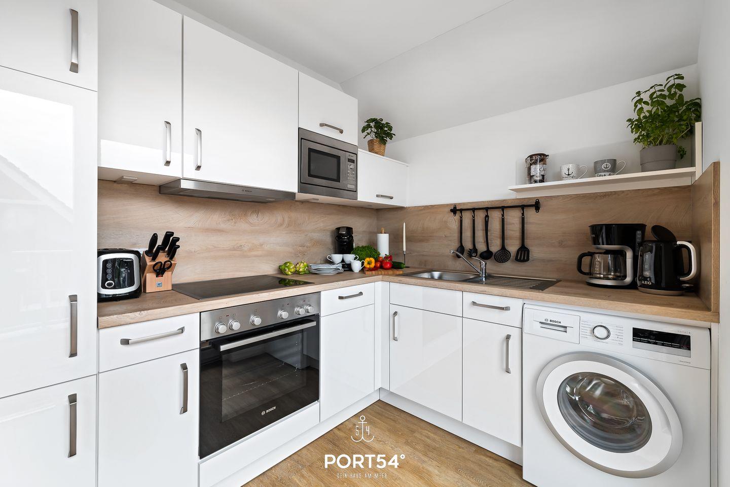 Küche ist voll ausgestattet mit Waschmaschine, Geschirrspüler, Kaffeemaschine,