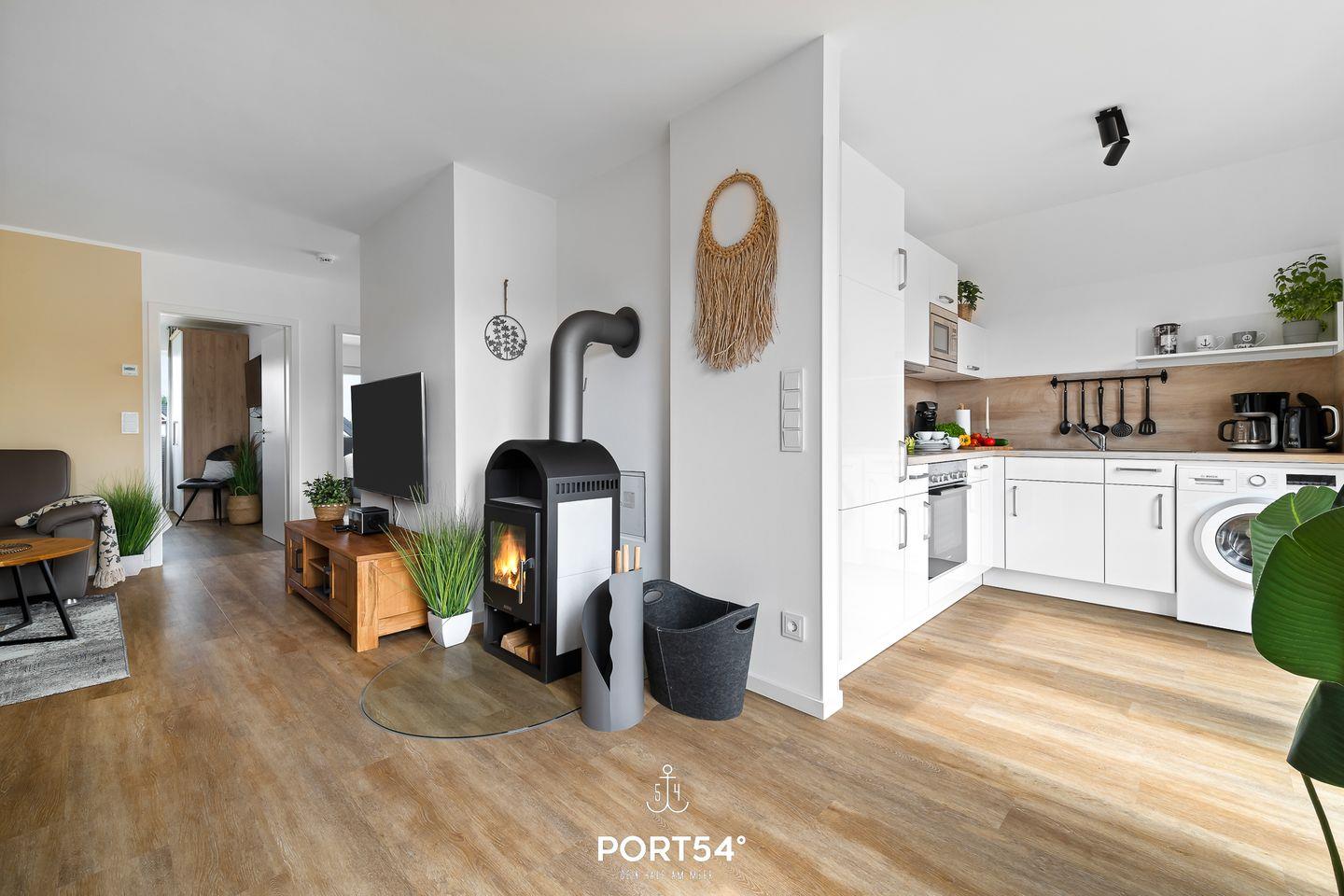 Ein Feuer im Kamin sorgt für zusätzliche Gemütlichkeit an kalten