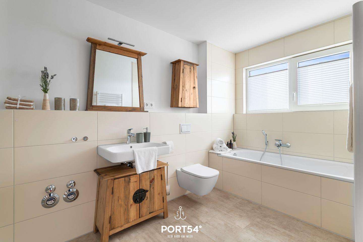Beide Tageslichtbäder überzeugen mit moderner Ausstattung. Es stehen Ihnen zwei bodengleiche Duschen sowie eine Badewanne zur Verfügung – ideal für Familien oder entspannte Wellnessmomente. Hochwertige Armaturen und stilvolle Details unterstreichen den gehobenen Charakter des Hauses.