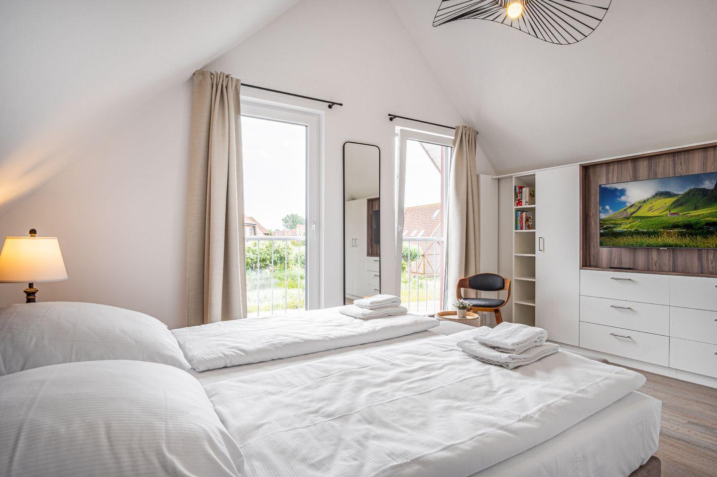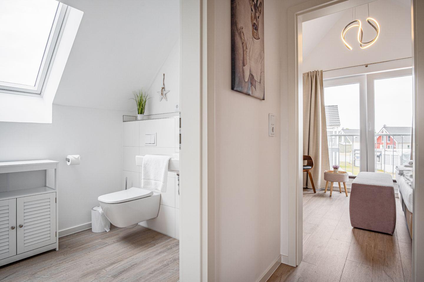 Das exklusive Ferienhaus "WattWächter" bietet auf ca. 88m² Platz für bis zu 6 Personen. Im EG erwartet Sie ein offener Wohn- und Essbereich mit Zugang zur Terrasse, eine vollausgestattete Küche, sowie ein Duschbad mit ebenerdiger Dusche & Infrarot-Sauna. 2 Schlafzimmer im OG, wovon beide mit einem Doppelbett ausgestattet sind. Das im OG gelegene Wannenbad lädt zur Entspannung ein. Auf der Terrasse mit angrenzender Rasenfläche lassen sich sonnige Tage verbringen.