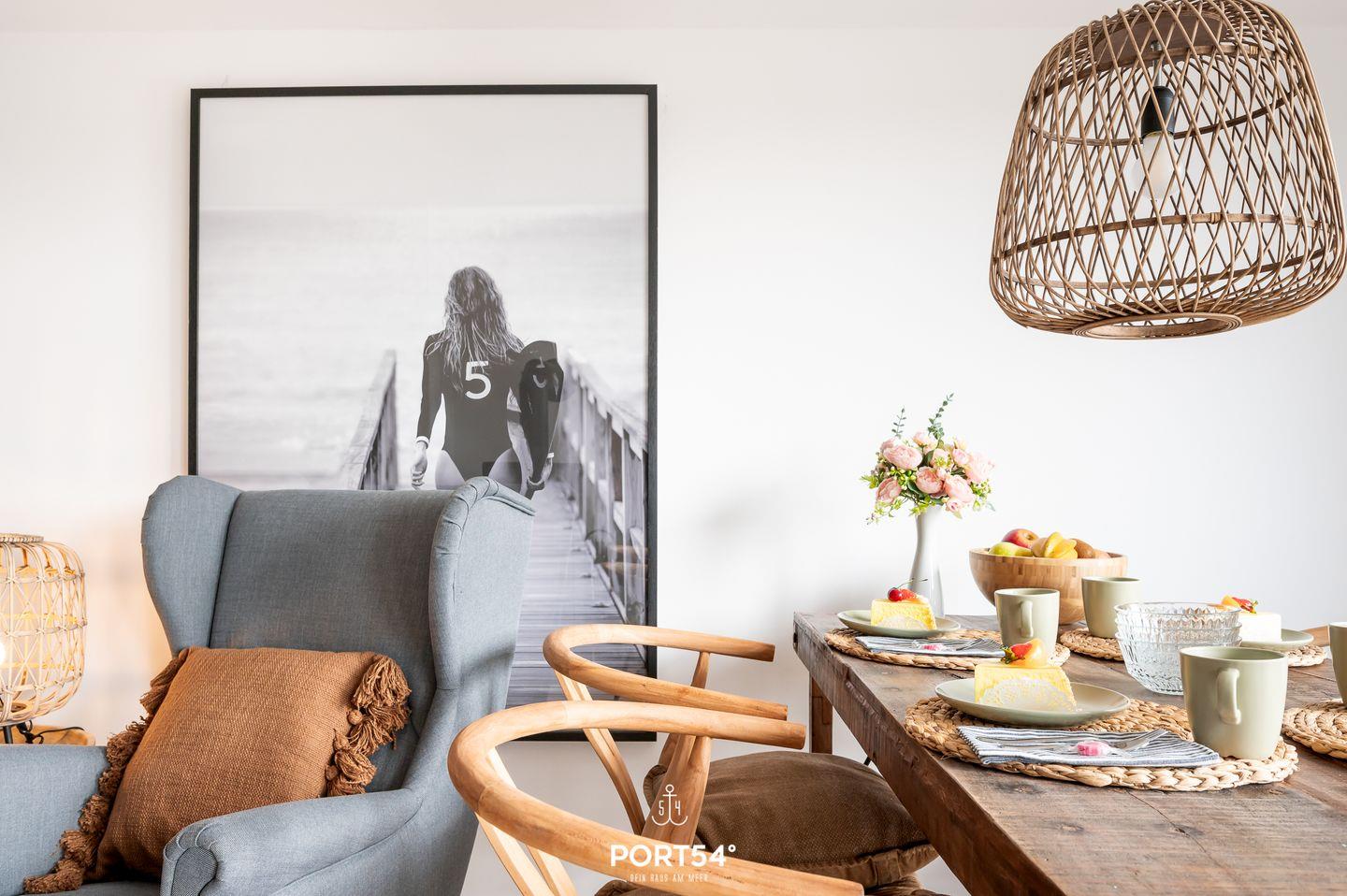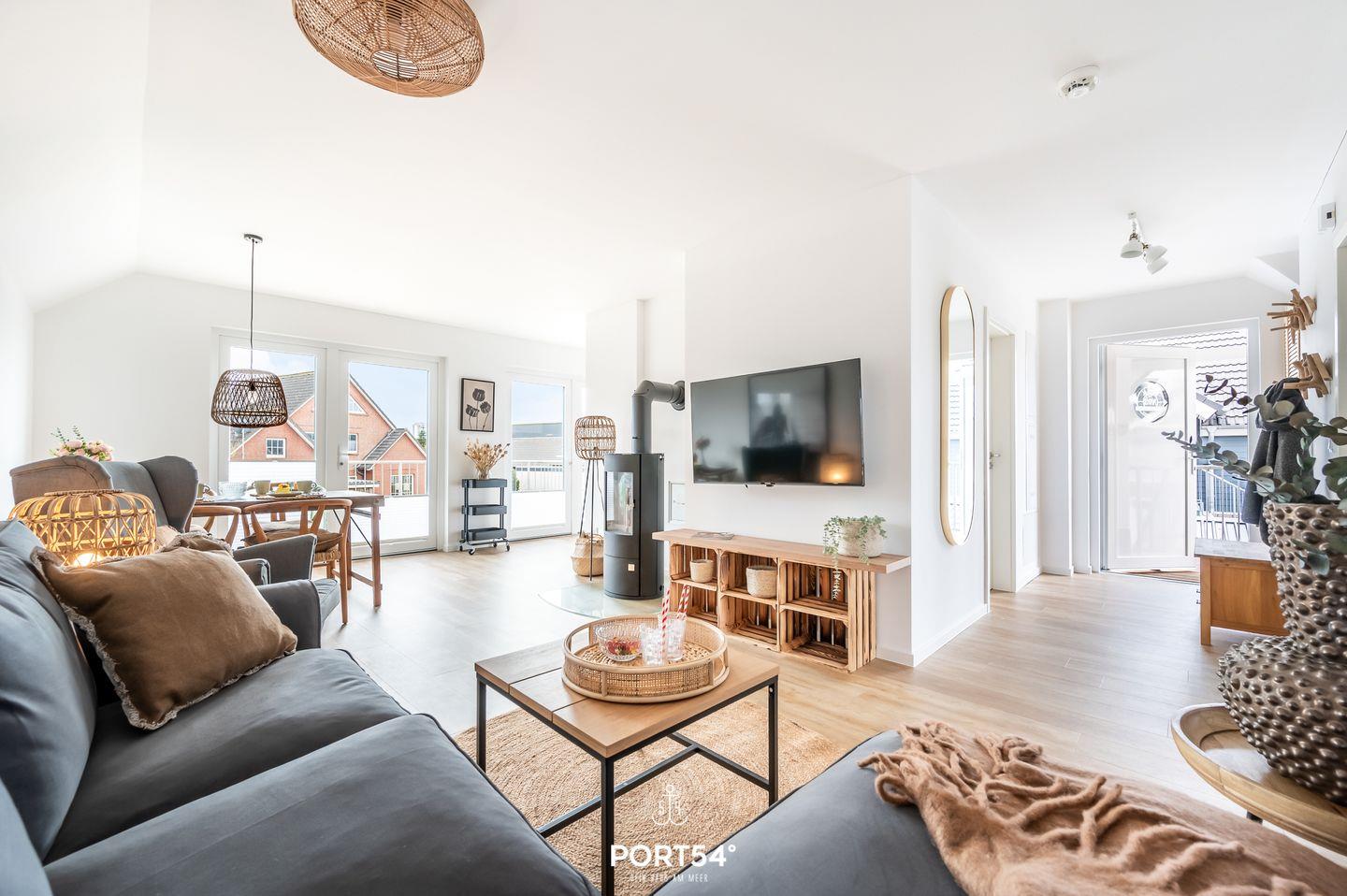 Im ersten Obergeschoss gelegen bietet der "Diek No. 3" neben zwei Schlafzimmern, einem geräumigen Wohn- und Essbereich, einer Küche, einem Badezimmer auch einen vollmöblierten Balkon. Das helle Wohnzimmer bietet auf der gemütlichen Couch die besten Möglichkeiten vor dem Kamin zu entspannen. Auch in der Infrarot-Sauna können Sie sich nach einem langen Strandspaziergang erholen und die Seele baumeln lassen. Beide Schlafzimmer sind mit Doppelbetten (je 180x200cm) ausgestattet. Durch die vollverdunkelbaren, mit Insektenschutz ausgestatteten Fenster steht einer erholsamen Nachtruhe nichts im Wege. In der vollausgestatteten Küche lassen sich gesellige Kochabende veranstalten. Für die kleinen Gäste steht ein Hochstuhl und ein Kinderreisebett zur Verfügung. Entspannte Sommertage oder laue Sommerabende - auf dem vollmöblierten Balkon ist für jeden etwas dabei. Auf dem Elektro-Grill kann man sich auch unter freiem Himmel bestens versorgen. Vor der Unterkunft steht ein kostenfreier Parkplatz zur Verfügung. Mitgebrachte oder vor Ort ausgeliehene Fahrräder im abschließbaren Fahrradschuppen direkt vor dem Haus untergestellt werden.