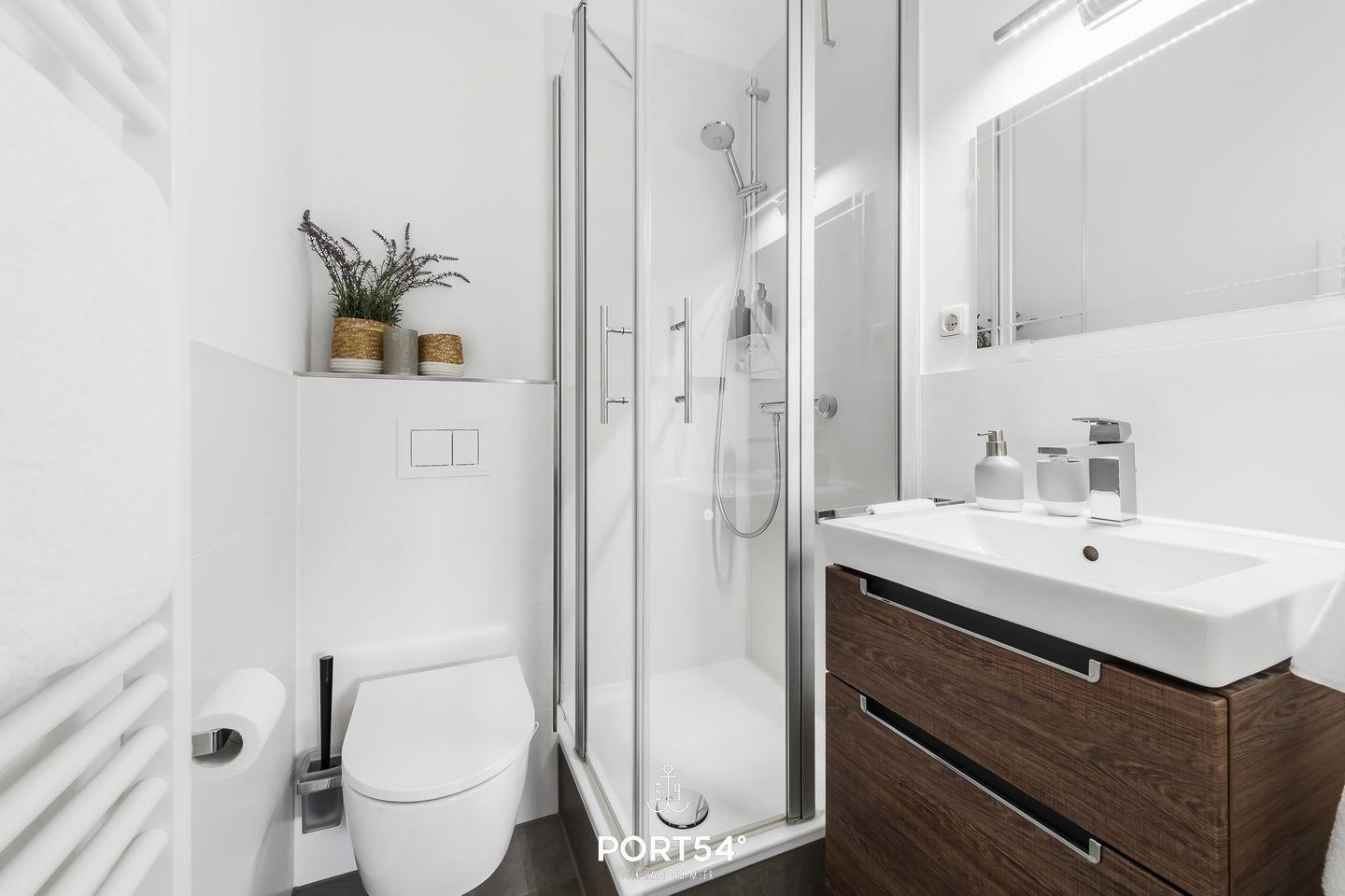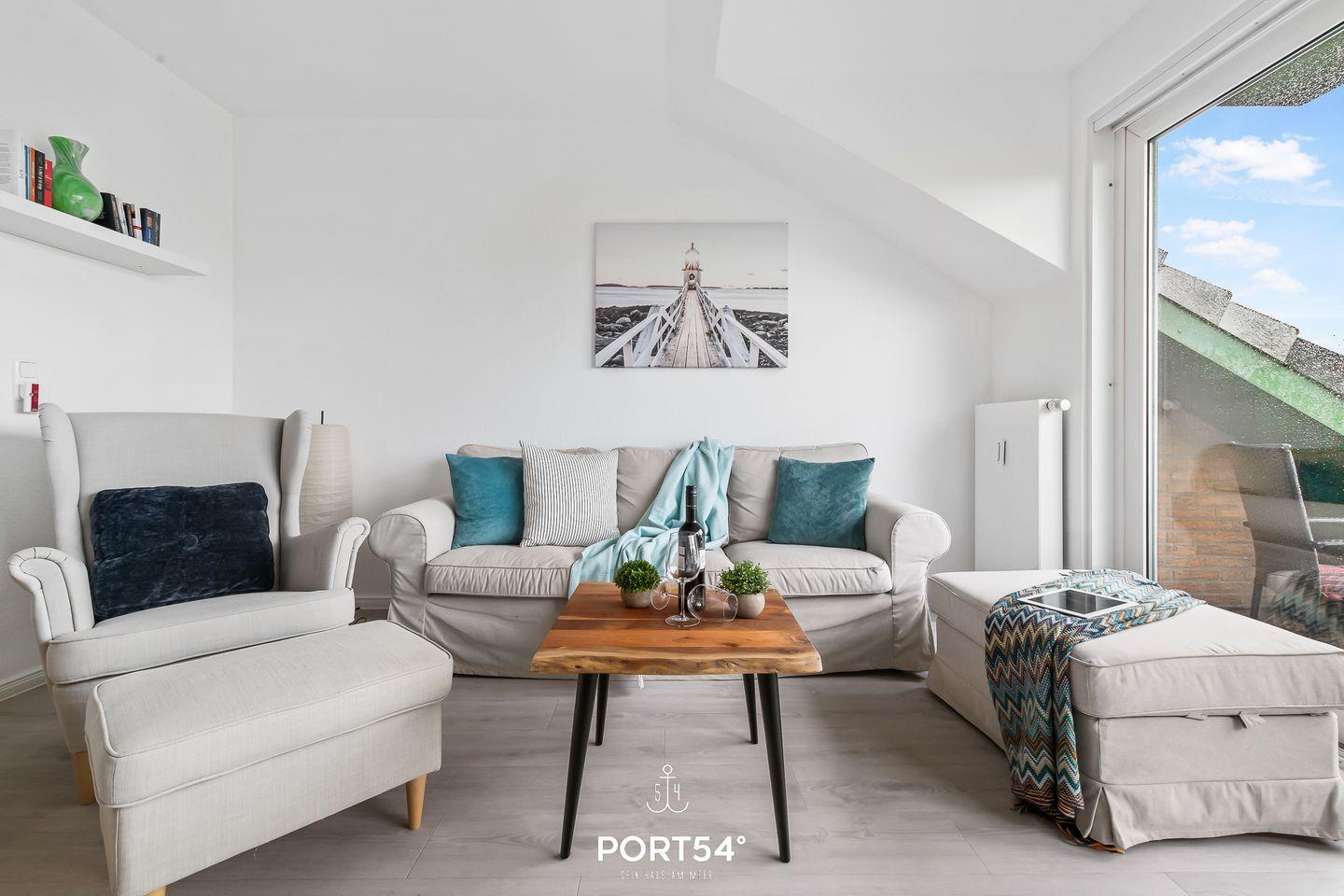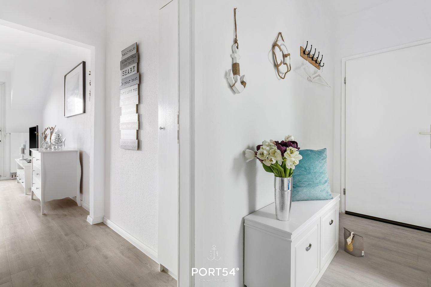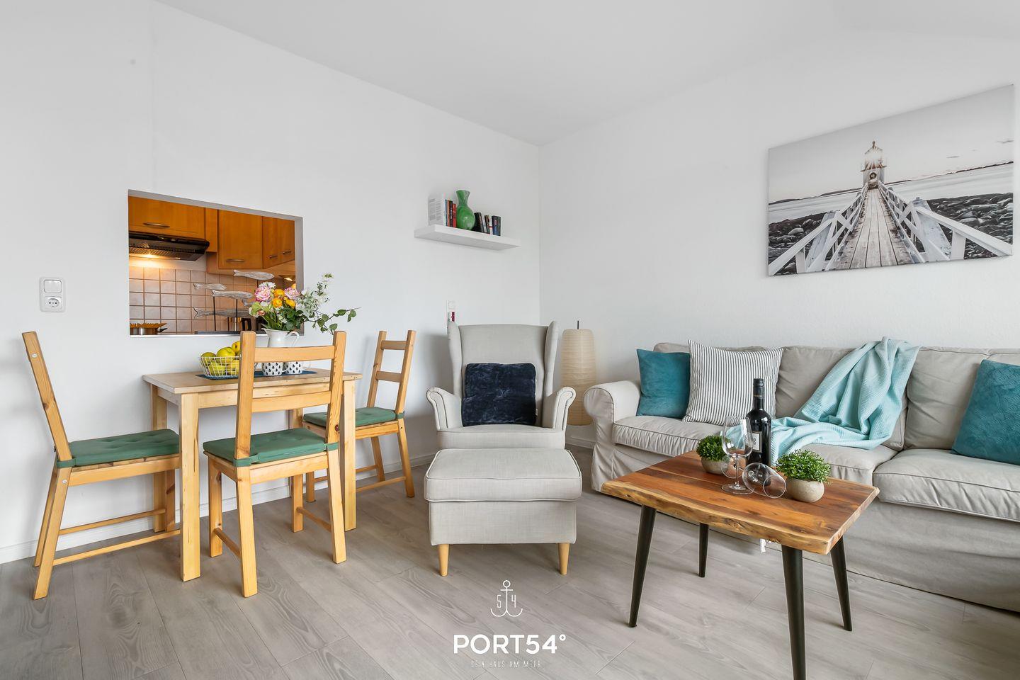 Für bis zu 3 Personen bietet die im 2. Obergeschoss gelegene Wohnung "Deck 7" zwei gemütliche Schlafzimmer, ein geräumiges Wohnzimmer mit angrenzendem Essbereich und offener Küche, sowie ein Duschbad en Suite. Im ersten Schlafzimmer erwartet Sie ein großes Doppelbett (180x200cm) sowie der Zugang zum Duschbad. Bitte beachten Sie, dass das Bad nur durch dieses Schlafzimmer zu erreichen ist. Das zweite Schlafzimmer ist mit einem Einzelbett (90x200cm) ausgestattet. Für eine erholsame Nachtruhe ist das Schlafzimmer mit Verdunkelungsmöglichkeiten ausgestattet. Für die kleinsten Gäste steht ein Hochstuhl sowie ein Reisebett zur Verfügung. Zur Wohnung gehört ein kleiner Balkon mit Tisch und Stühlen. Parkplätze sind für alle Wohnungen am Haus vorhanden. Zusammen mit den anderen Wohnungen können Sie im Fahrradschuppen Ihre mitgebrachten oder vor Ort geliehenen Fahrräder unterstellen. Außerdem befindet sich im gemeinschaftlich genutzten Waschraum eine Waschmaschine und ein Trockner, diese sind gegen eine kleine Gebühr nutzbar. Hinter dem Haus befindet sich eine private Parkfläche, auf welcher Sie Ihren PKW abstellen können.