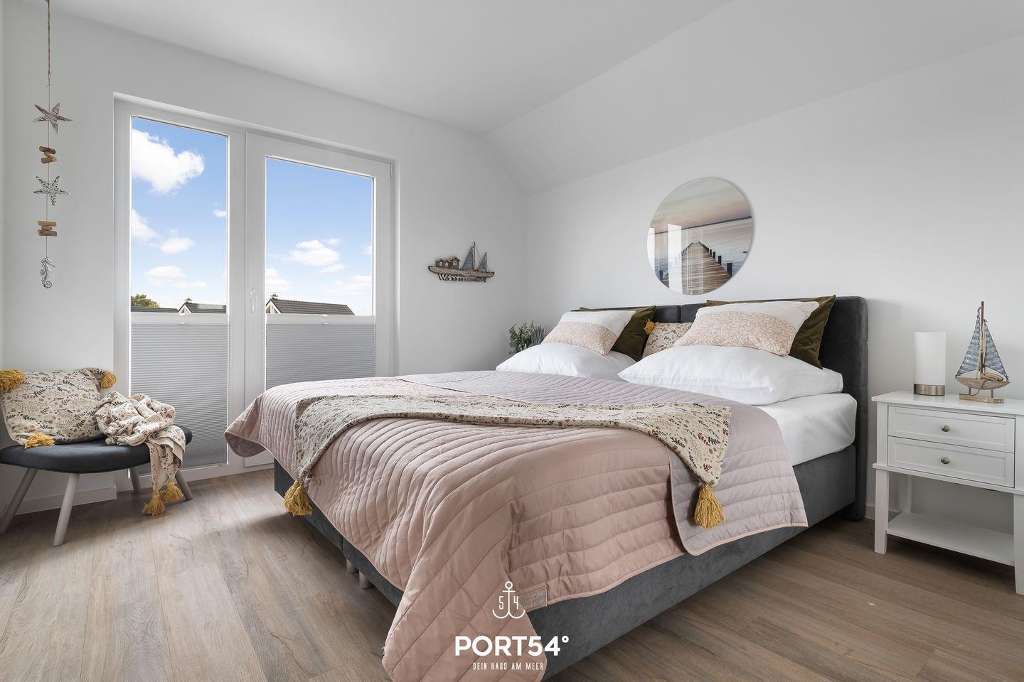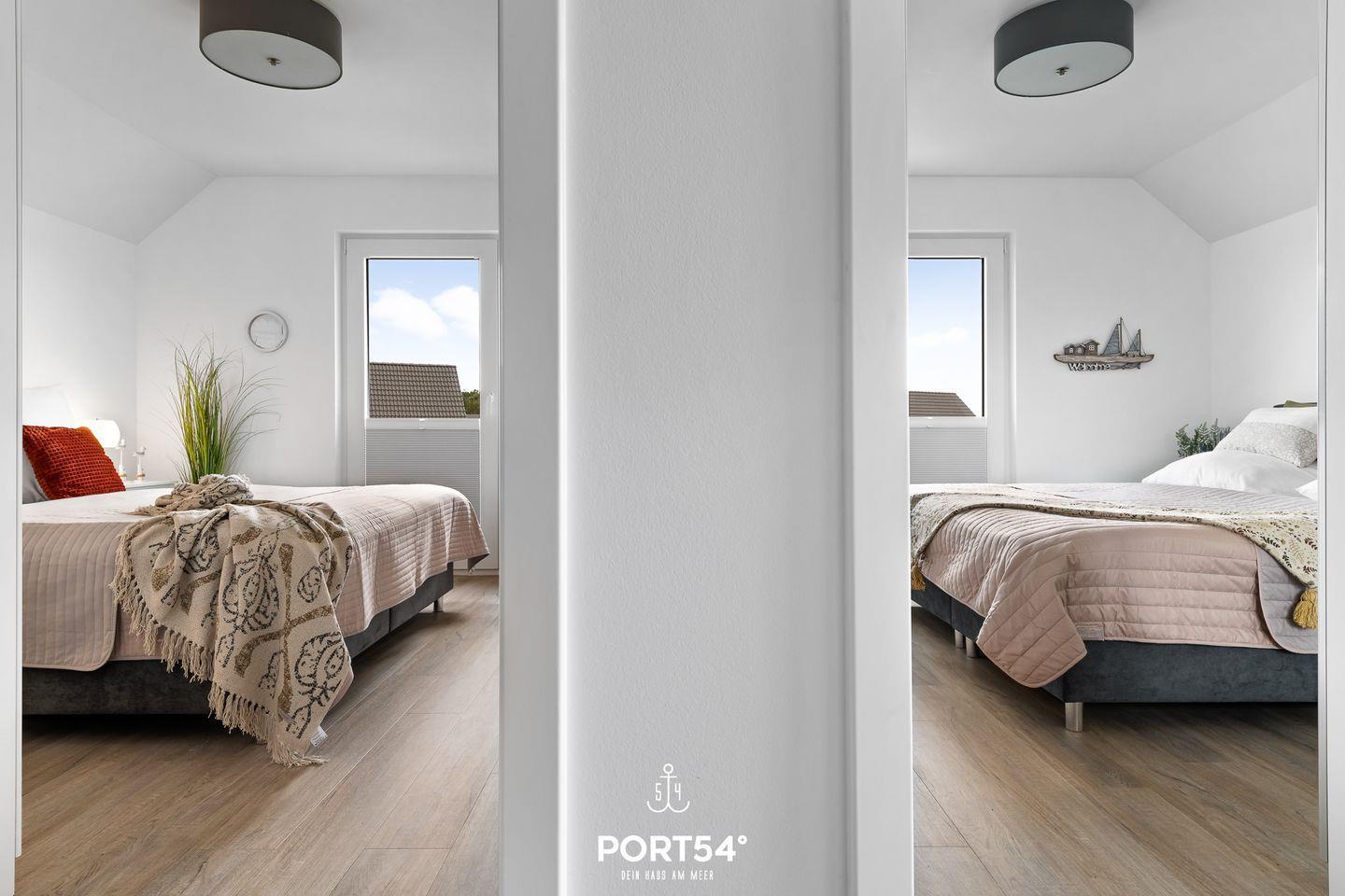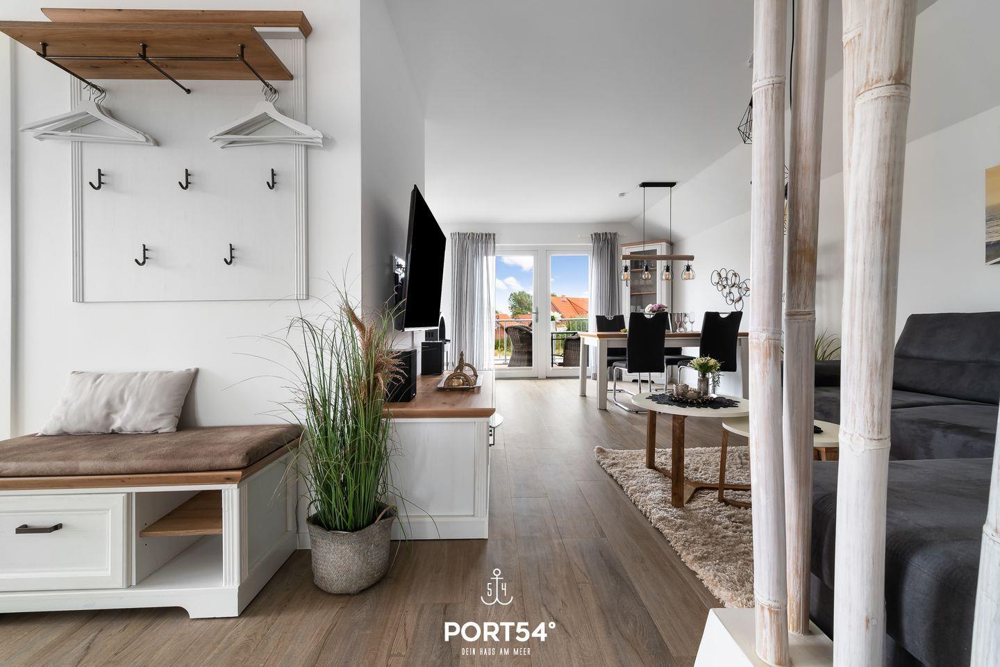 Die modern ausgestattete Ferienwohnung "Strandgut" im Obergeschoss verfügt auf 82m² einem offenen Wohn- und Essbereich mit angrenzender Küche über zwei Schlafzimmer und ein Badezimmer. Bei der Lage und Ausstattung des "Strandguts" steht einem entspanntem Urlaubs nichts im Wege. Der helle Wohnbereich lädt zu geselligen Abenden vor dem Kamin ein. Ein Flachbild-TV ist ebenfalls vorhanden. In der angrenzenden, offenen und vollausgestatteten Küche können alle zusammen kochen und die Ruhe des Nordsee Resorts genießen. Am 160x90cm großen Esstisch finden bis zu vier Erwachsene Platz. Ein Hochstuhl für die kleinen Gäste steht auch bereit. Für eine entspannte Nacht stehen im "Strandgut" über zwei Schlafzimmer, wovon eins mit Doppelbett (180x200cm) und das andere mit zwei Einzelbetten (je 90x200cm) ausgestattet ist. Im Badezimmer befindet sich eine ebenerdigen Dusche und ein Föhn. Traumhaftschöne Sonnenauf- und Untergänge können auf dem großen Balkon erlebt werden. Hierfür stehen Gartenmöbel mit Auflagen bereit. Auch einem gemütlichen Grillabend steht dank eines eigenen Elektro-Grills nichts im Wege. Vor dem "Strandgut" steht Ihnen ein eigener, kostenfreier Parkplatz für einen PKW zur Verfügung. Mitgebrachte oder vor Ort ausgeliehene Fahrräder können im abschließbaren Fahrradschuppen direkt vor dem Haus untergestellt werden.