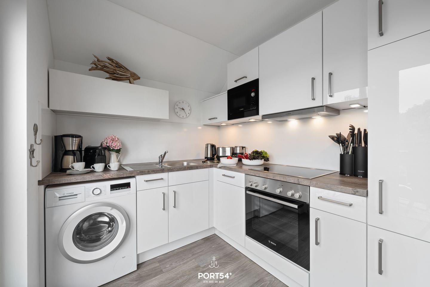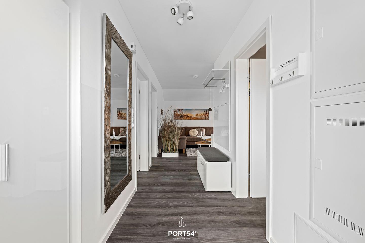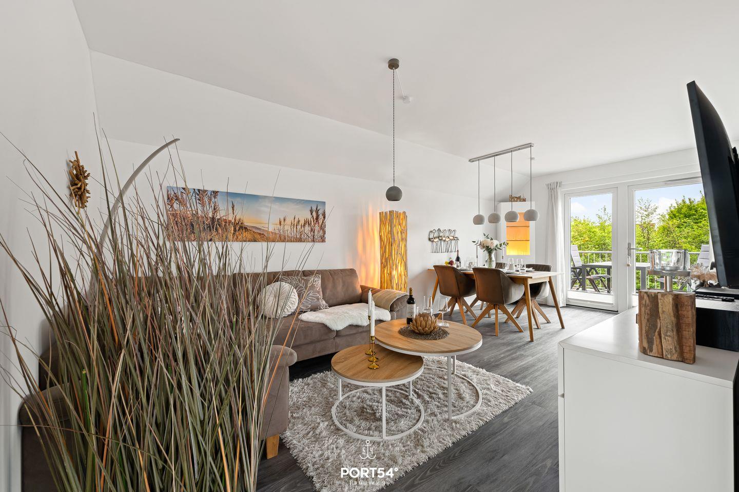 Willkommen im "Dock 40" in Büsum! Die Ferienwohnung bietet auf 80m² einen offenen Wohn- und Essbereich mit Küche, zwei Schlafzimmer, ein Badezimmer und einen Balkon. In dem gemütlichen Wohnbereich können Sie es sich auf dem Sofa vor dem Smart-TV mit Magenta-TV bequem machen oder auch spannende Spieleabende veranstalten. Der Kamin sorgt für eine mollige Wärme und eine heimelige Atmosphäre. In der vollausgestatteten Küche können Sie leckere Gerichte zaubern oder Kuchen backen. Für unsere kleinen Gäste steht ein Hochstuhl und ein Kinderbett zur Verfügung. Das eine der beiden Schlafzimmer ist mit einem bequemen Doppelboxspringbett (180x200cm) ausgestattet und das andere bietet zwei, bei Bedarf zusammenschiebbare, Einzelboxspringbetten (je 90x200cm). Für erholsamen Schlaf sind Verdunkelungsmöglichkeiten sowie Insektengitter vorhanden. Beide Zimmer verfügen außerdem über Smart-TV´s mit Magenta TV. Im Badezimmer finden Sie neben einer ebenerdigen Dusche und einem Kosmetikspiegel auch einen Föhn und einen Handtuchtrockner vor. Und das absolute Highlight: eine Infrarotsauna! Erholung pur nach langen Strandspaziergängen oder auch einfach um dem Alltagsstress zu entfliehen und mal so richtig entspannen zu können. Über die Wohn- und Essbereich gelangen Sie auf den möblierten Balkon mit großem Sonnenschirm, wo Sie Ihren Morgenkaffee genießen können. An lauen Sommerabenden können Sie auf dem Weber-Elektrogrill schmackhafte Köstlichkeiten zubereiten. In dem abschließbaren Fahrradschuppen können mitgebrachte oder ausgeliehene Fahrräder (Lademöglichkeit für E-Bikes vorhanden) untergestellt werden. Direkt an der Wohnung befindet sich ein kostenfreier Parkplatz, hier ist eine E-Ladesäule ab Frühjahr 2024 verfügbar. Ihre Fellnase ist natürlich auch herzlich Willkommen.