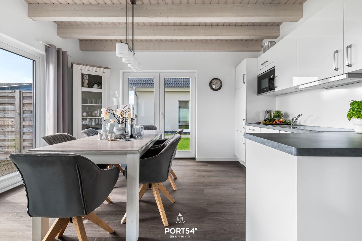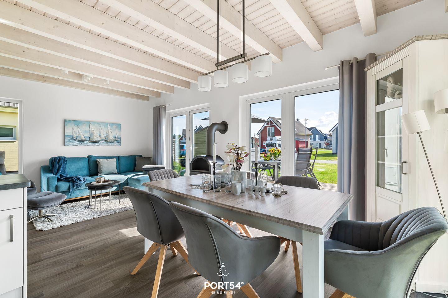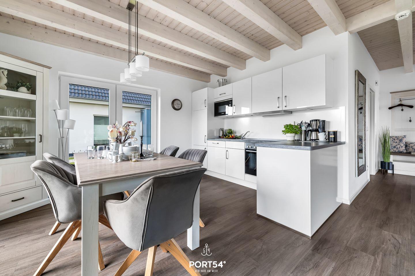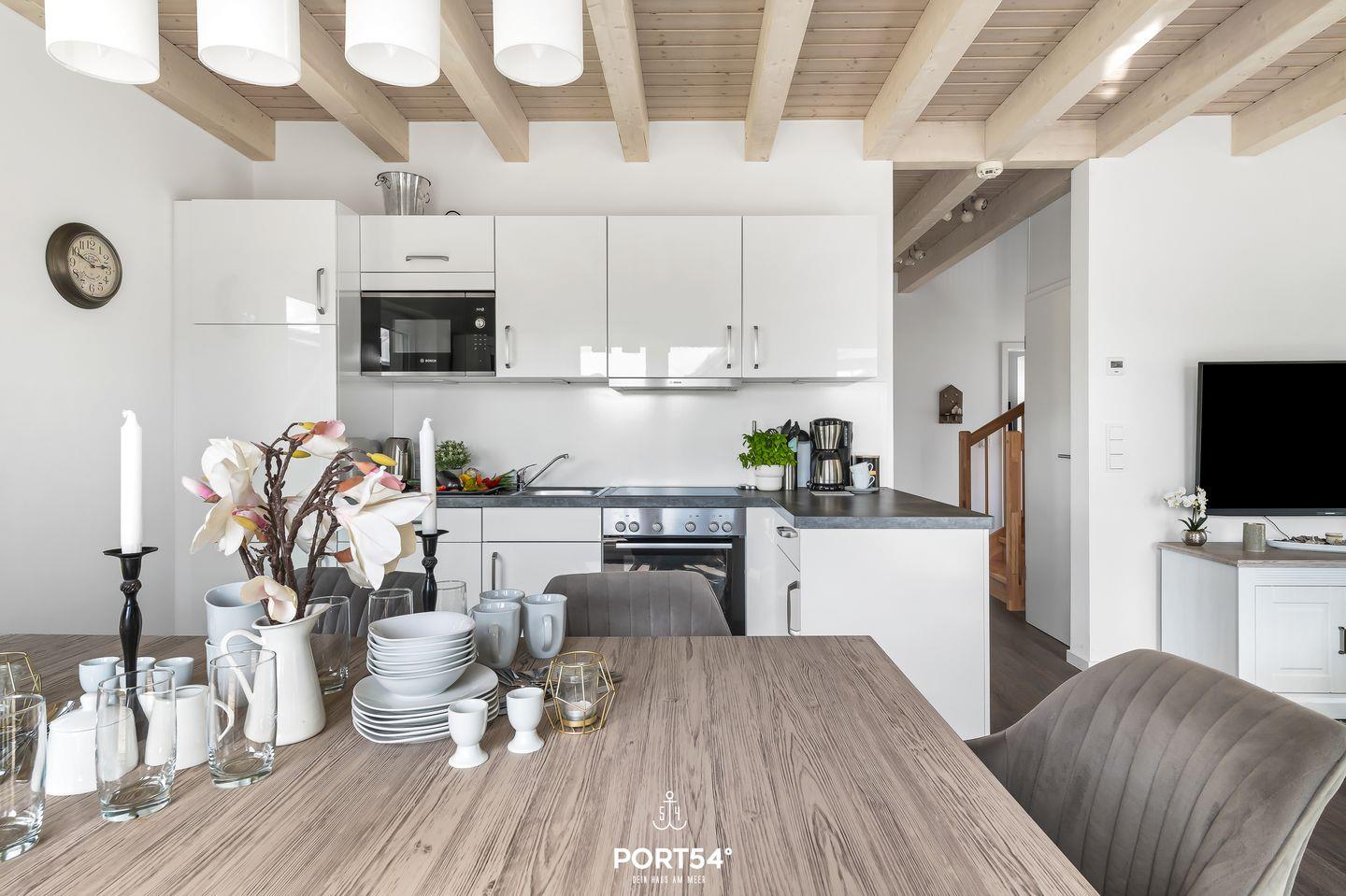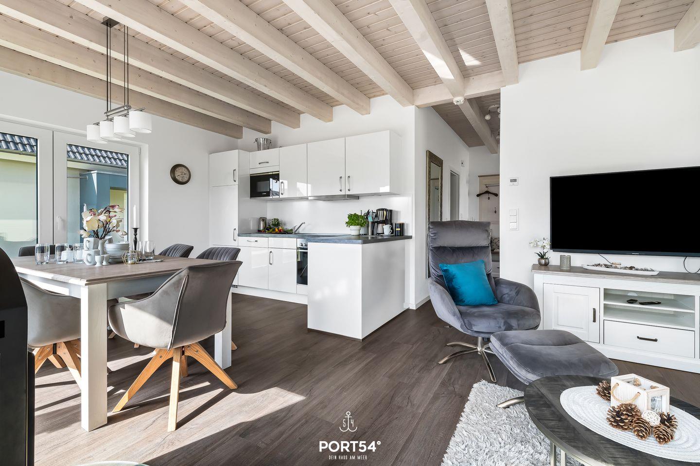 Helle, lichtdurchflutete Räume, eine offene helle Holzbalkendecke und ein offenes Raumkonzept in harmonischen Farbtönen bieten Ihnen alles, was Sie zu einem unvergesslichen Urlaub an der Nordsee benötigen. Bodentiefe Fenster sorgen im ganzen Haus für viel natürliches Tageslicht.