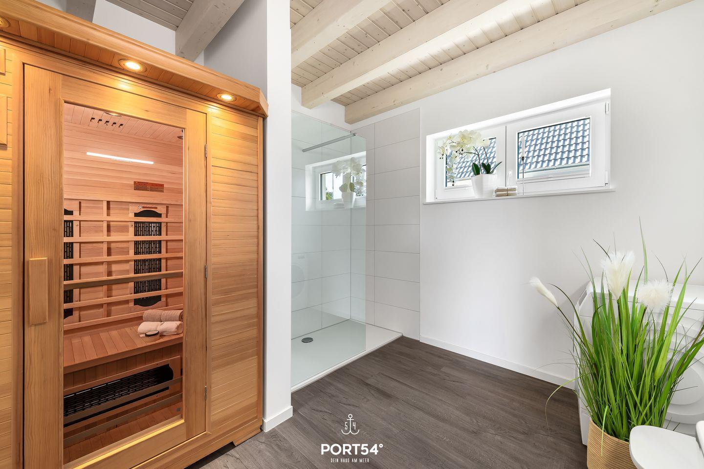 Tageslicht-Duschbad mit ebenerdiger Dusche und Infrarotkabine