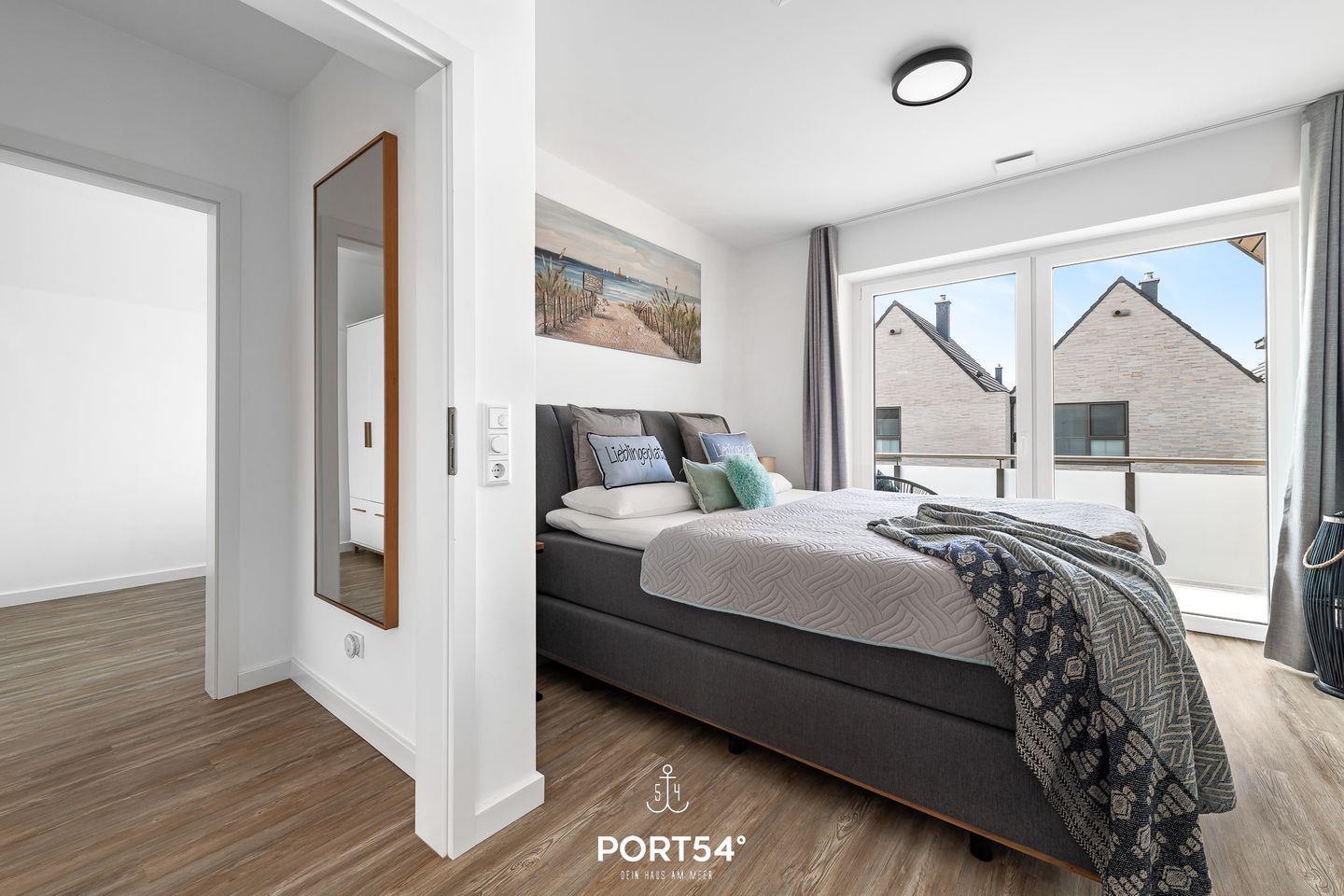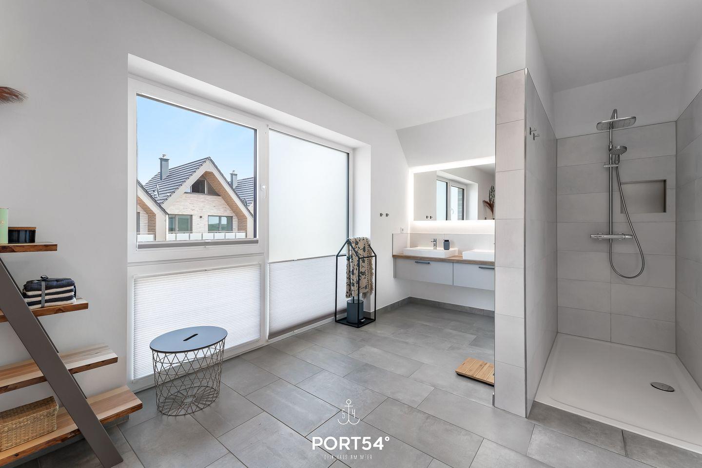 Im EG befinden sich ein Schlafzimmer mit Doppelbett, ein Bad mit ebenerdiger Dusche und der offene Wohn- & Essbereich mit Kaminofen, angrenzender Küche und Zugang zur Terrasse. Das OG erwartet Sie mit 2 weiteren Schlafzimmern mit Boxspring-Doppelbetten, sowie einem Vollbad mit finnischer Sauna. Vor dem Haus stehen Ihnen ein kostenfreier Parkplatz, sowie ein abschließbarer Fahrradschuppen zur Verfügung.