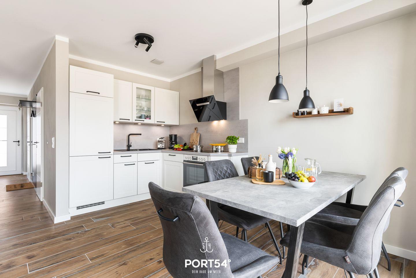 Im "Diekkieker" finden bis zu 5 Personen entspannt Platz, um einen Nordseeurlaub der Extraklasse zu verbringen. Über zwei Etagen bietet das Reihenendhaus auf etwa 120m² neben drei Schlafzimmern auch zwei Badezimmer, einen großen, lichtdurchfluteten Wohn- und Essbereich mit offener Küche, eine Terrasse und eine Loggia im Obergeschoss.