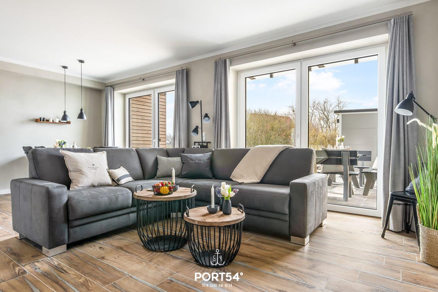 Die in Süd-West-Ausrichtung ausgelegte vollmöblierte Terrasse, sowie die mit zwei Stühlen und einem Tisch ausgestattete Loggia im ersten Obergeschoss bieten zu fast jeder Tageszeit den perfekten Ort für entspannte Sonnenstunden. Für angenehmen Schatten an heißen Tagen sorgt dabei eine elektrische Markise. In der Abendsonne lassen sich perfekte Grillabende am Elektrogrill verbringen.