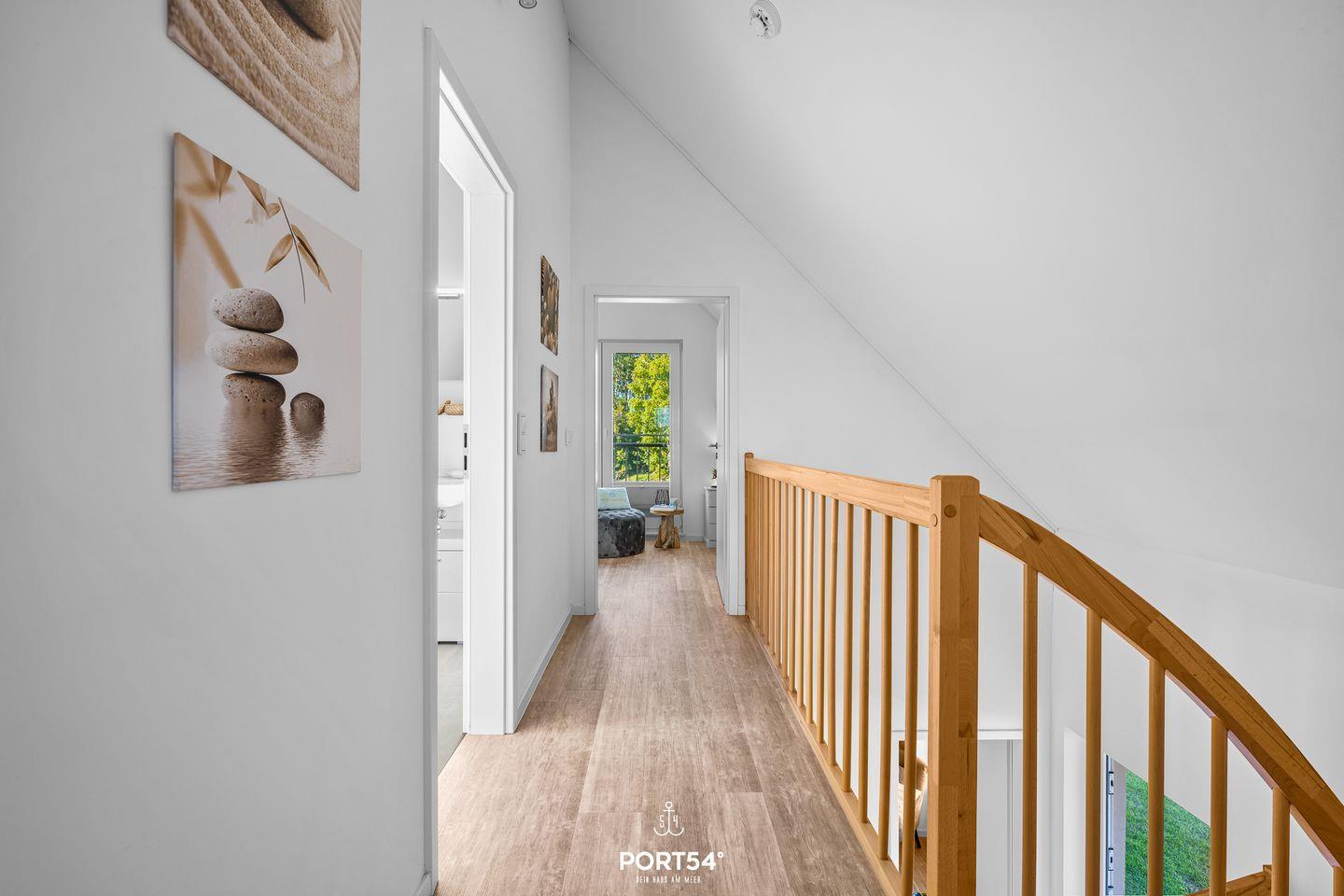 Auf 2 Etagen befinden sich insgesamt 3 Schlafzimmer, 2 Bäder, sowie eine offene Küche mit angrenzendem Wohn- und Essbereich und Kaminofen. Die Schlafzimmer sind mit 2 Doppelbetten und 2 Einzelbetten ausgestattet. Das Duschbad im EG bietet eine Infrarotsauna, im OG finden Sie ein Wannenbad. Die Terrasse ist vollmöbliert und mit einem Grill ausgestattet. Vor dem Haus befindet sich 1 PKW-Stellplätz und ein abschließbarer Fahrradschuppen.