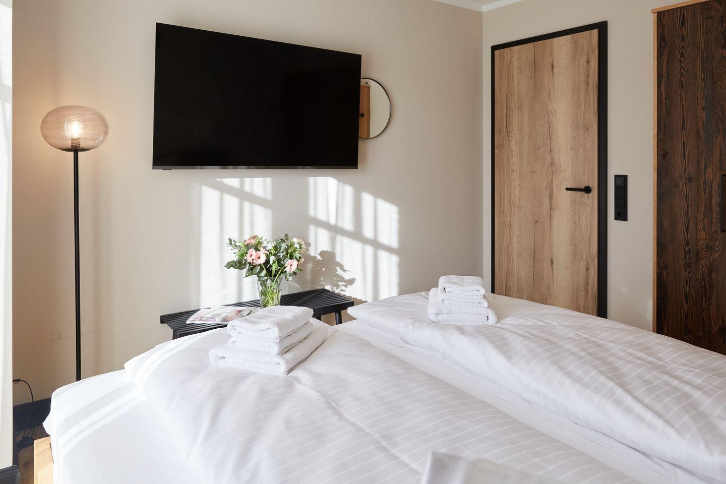 Auf rund 48 Quadratmetern finden zwei Gäste Ihr kleines Urlaubsrefugium mit einer modernen und hochwertigen Ausstattung. Genießen Sie das entspannte Ambiente im lässigen Industrial Style, das gleichzeitig jede Menge Cozyness versprüht. Zusätzlich sorgen schallisolierte 3-fach verglaste Fenster und eine Fußbodenheizung für maximale Behaglichkeit.