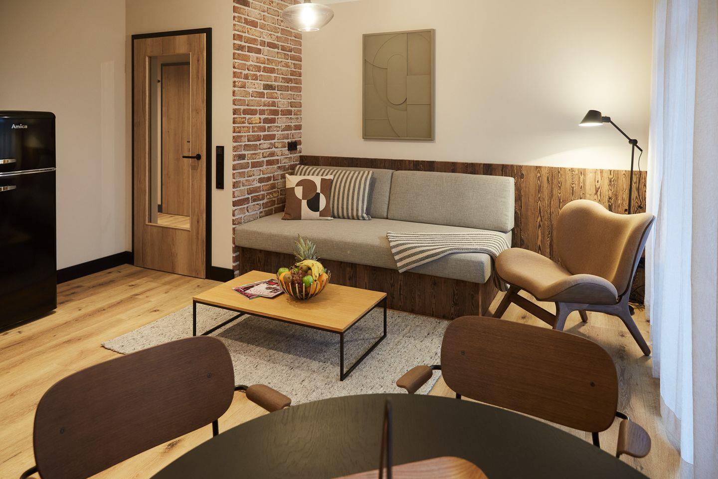 Auf rund 49 Quadratmetern finden zwei Gäste Ihr kleines Urlaubsrefugium mit einer modernen und hochwertigen Ausstattung. Genießen Sie das entspannte Ambiente im lässigen Industrial Style, das gleichzeitig jede Menge Cozyness versprüht. Zusätzlich sorgen schallisolierte 3-fach verglaste Fenster und eine Fußbodenheizung für maximale Behaglichkeit.