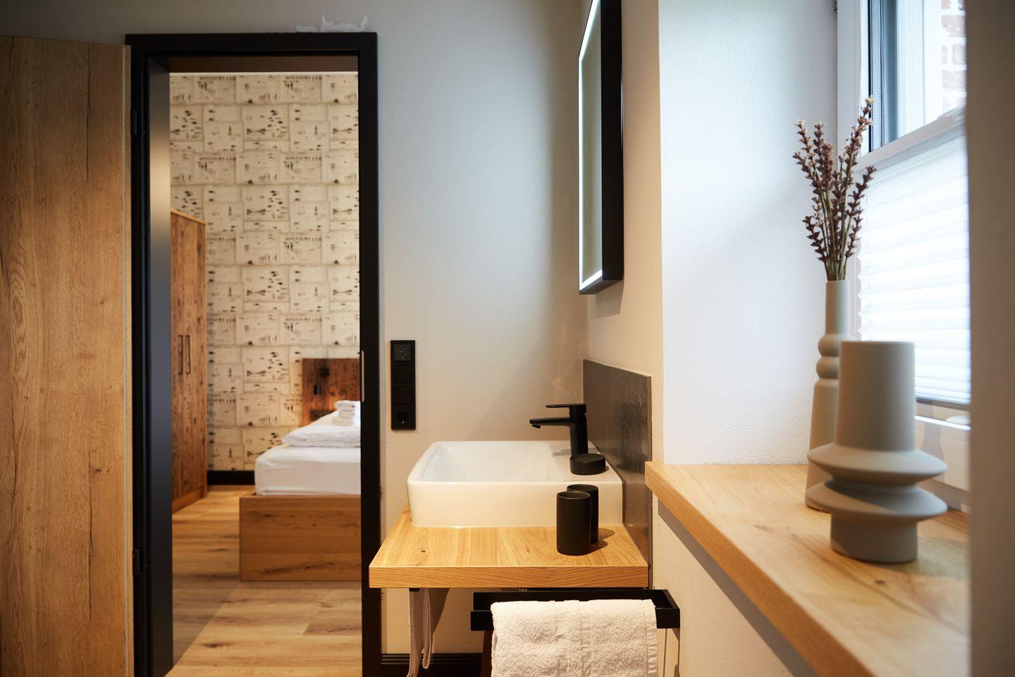 Auf rund 76 Quadratmetern finden vier Gäste Ihr kleines Urlaubsrefugium mit einer modernen und hochwertigen Ausstattung. Genießen Sie das entspannte Ambiente im lässigen Industrial Style, das gleichzeitig jede Menge Cozyness versprüht. Zusätzlich sorgen schallisolierte 3-fach verglaste Fenster und eine Fußbodenheizung für maximale Behaglichkeit.