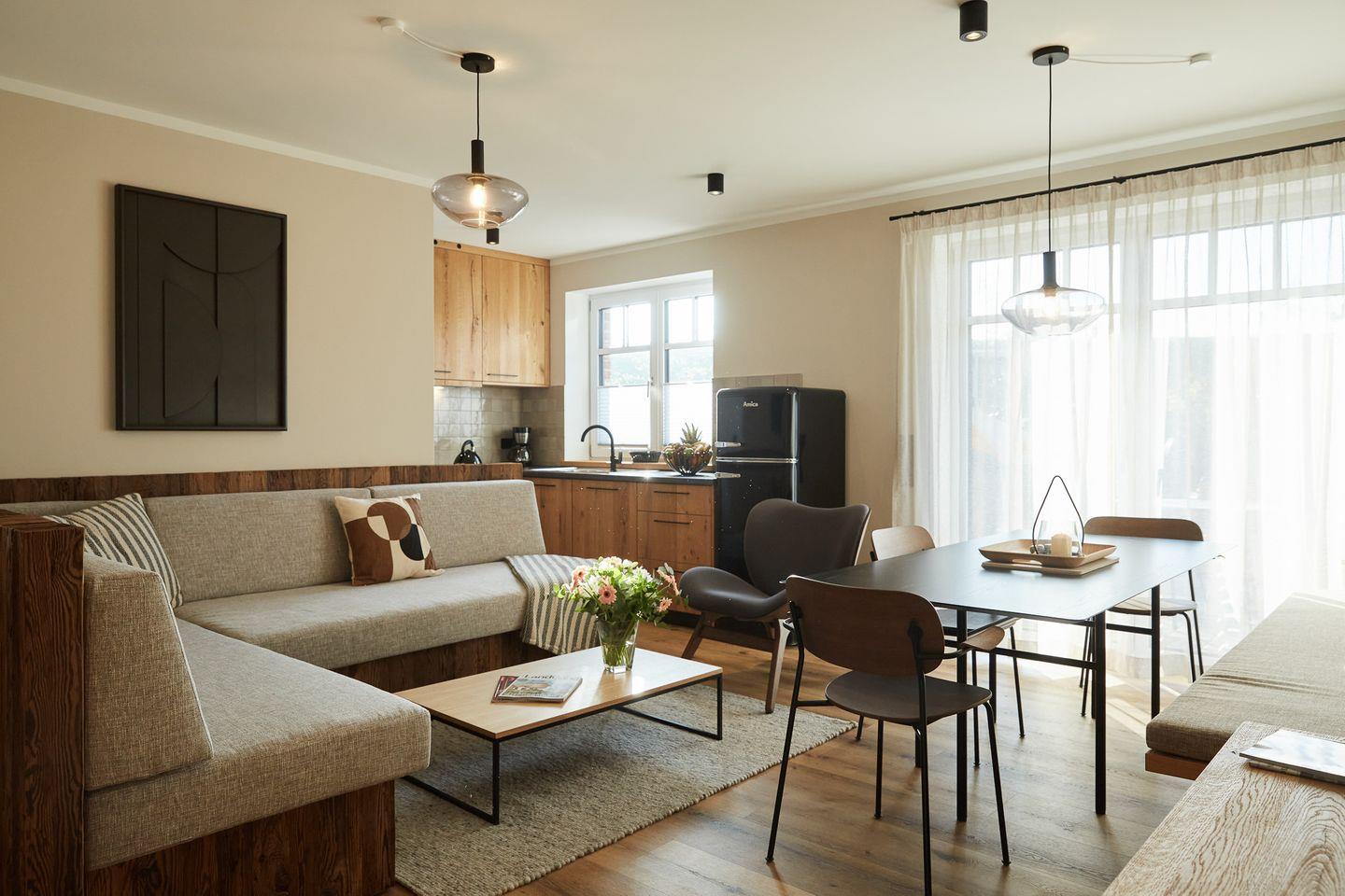 Auf rund 76 Quadratmetern finden vier Gäste Ihr kleines Urlaubsrefugium mit einer modernen und hochwertigen Ausstattung. Genießen Sie das entspannte Ambiente im lässigen Industrial Style, das gleichzeitig jede Menge Cozyness versprüht. Zusätzlich sorgen schallisolierte 3-fach verglaste Fenster und eine Fußbodenheizung für maximale Behaglichkeit.