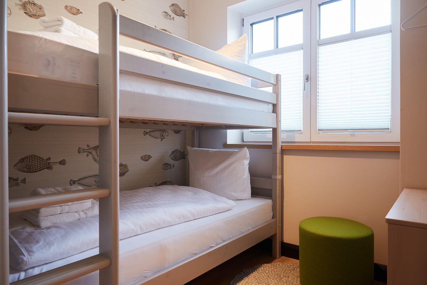 Hier warten drei Schlafzimmer mit komfortablen Doppelbett bzw. Hochbett und Smart-TV auf Sie, außerdem zwei Badezimmer. Die moderne Küche ist offen zum Wohnzimmer ausgerichtet – Sie finden dort u. a. einen Induktionsherd, Spülmaschine und Backofen. Der Balkon ist perfekt, um ein Buch zu lesen, zu entspannen oder einfach nur, um sich die herrliche Nordseeluft um die Nase wehen zu lassen …