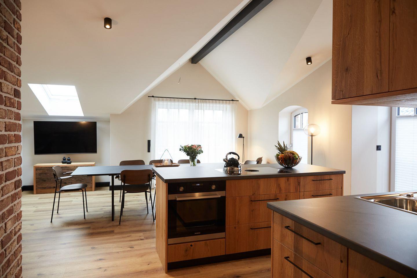 Auf rund 129 Quadratmetern finden acht Gäste Ihr kleines Urlaubsrefugium mit einer modernen und hochwertigen Ausstattung. Genießen Sie das entspannte Ambiente im lässigen Industrial Style, das gleichzeitig jede Menge Cozyness versprüht. Zusätzlich sorgen schallisolierte 3-fach verglaste Fenster und eine Fußbodenheizung für maximale Behaglichkeit.