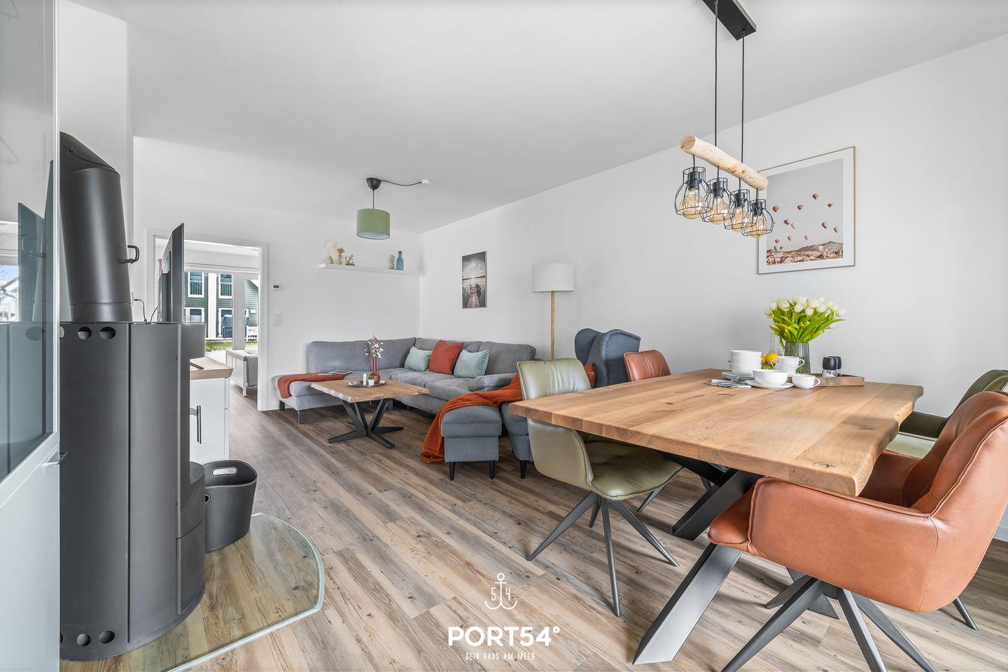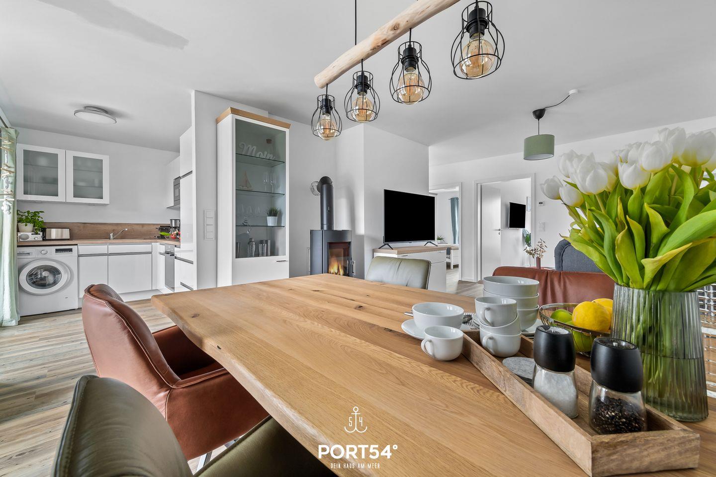 Willkommen in der Ferienwohnung "Sundowner" in Büsum! Urlaub pur! Die Ferienwohnung bietet auf 80m² einen offenen Ess- und Wohnbereich mit Küche, zwei Schlafzimmer, ein Badezimmer sowie eine Terrasse. Im Wohnbereich können Sie es sich auf dem Sofa gemütlich machen und Ihre Lieblingsserie schauen, während der Kamin für eine wohlige Wärme sorgt. In der vollausgestatteten Küche können Sie leckere Gerichte zaubern. Für unsere kleinen Gäste stehen ein Kinderbett und ein Kinderhochstuhl bereit. Die Schlafzimmer bieten jeweils ein Doppelbett (180x200cm), Verdunkelungsmöglichkeiten und einen Flachbild-TV (mit