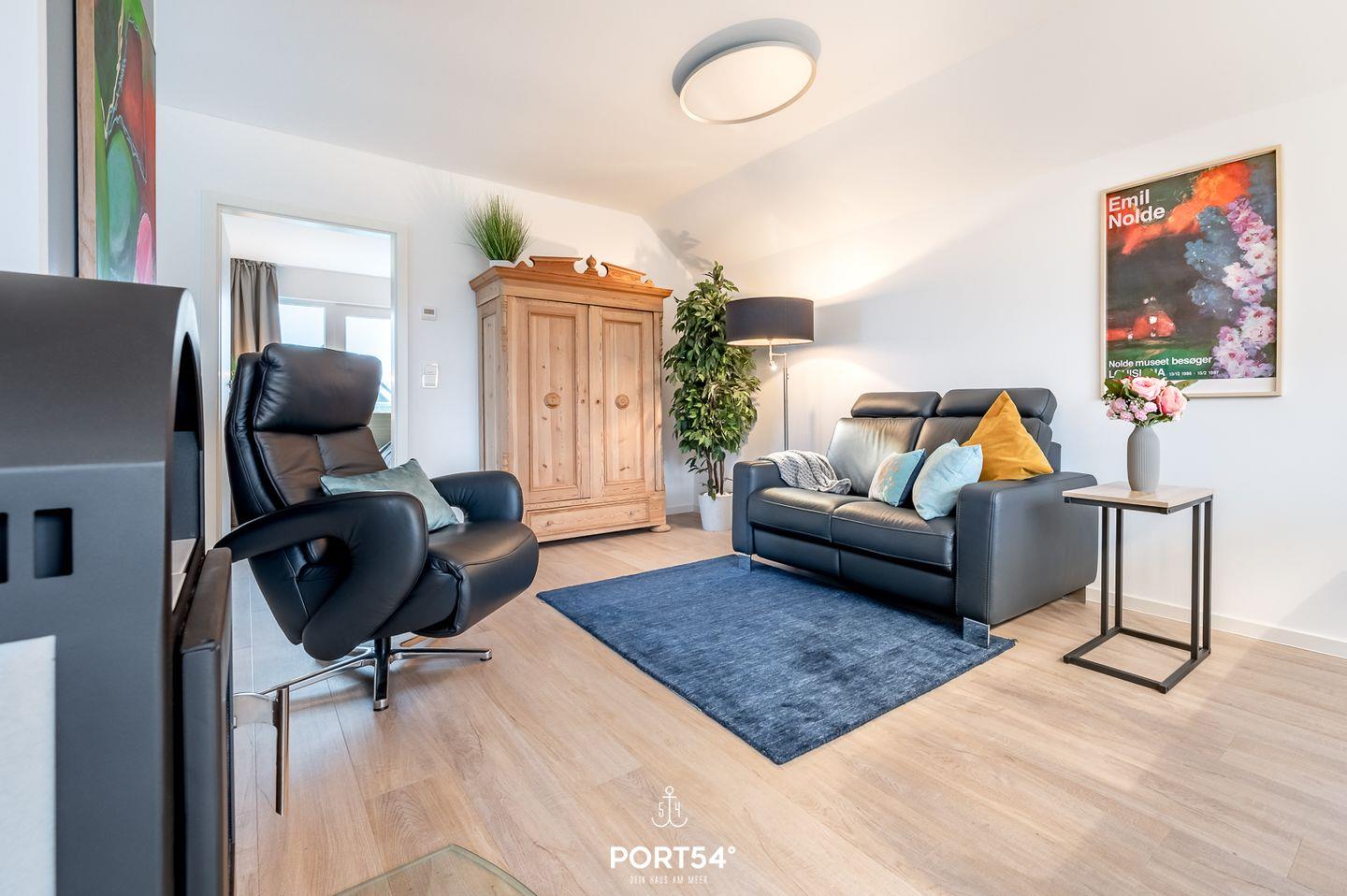 Die moderne Ferienwohnung bietet einen offenen Wohn-/Essbereich, 2 Schlafzimmer, ein Badezimmer und einen Balkon. Das eine der beiden Schlafzimmer bietet 2 gemütliche Doppelbetten und das 2. Schlafzimmer ist mit 1 komfortablen Doppelbett eingerichtet. In der vollausgestatteten Küche kann nach Lust und Laune gekocht werden. Das Bad bietet unter anderem eine Infrarotsauna- Wellness pur! Auf dem Balkon kann an der Nordseeluft gegrillt werden. Ein Stellplatz und ein Fahrradschuppen sind vorhanden.