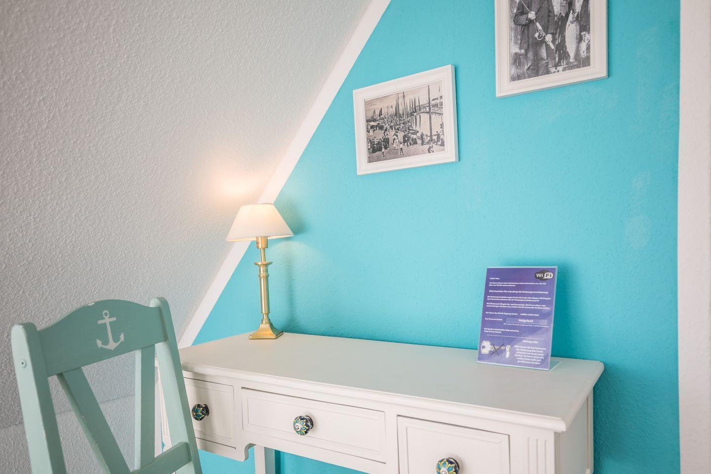 Sie erreichen dieses Apartment über eine Treppe im 1. Obergeschoss. Am Treppenaufgang befindet sich ein kleiner Vorflur und eine Garderobe.