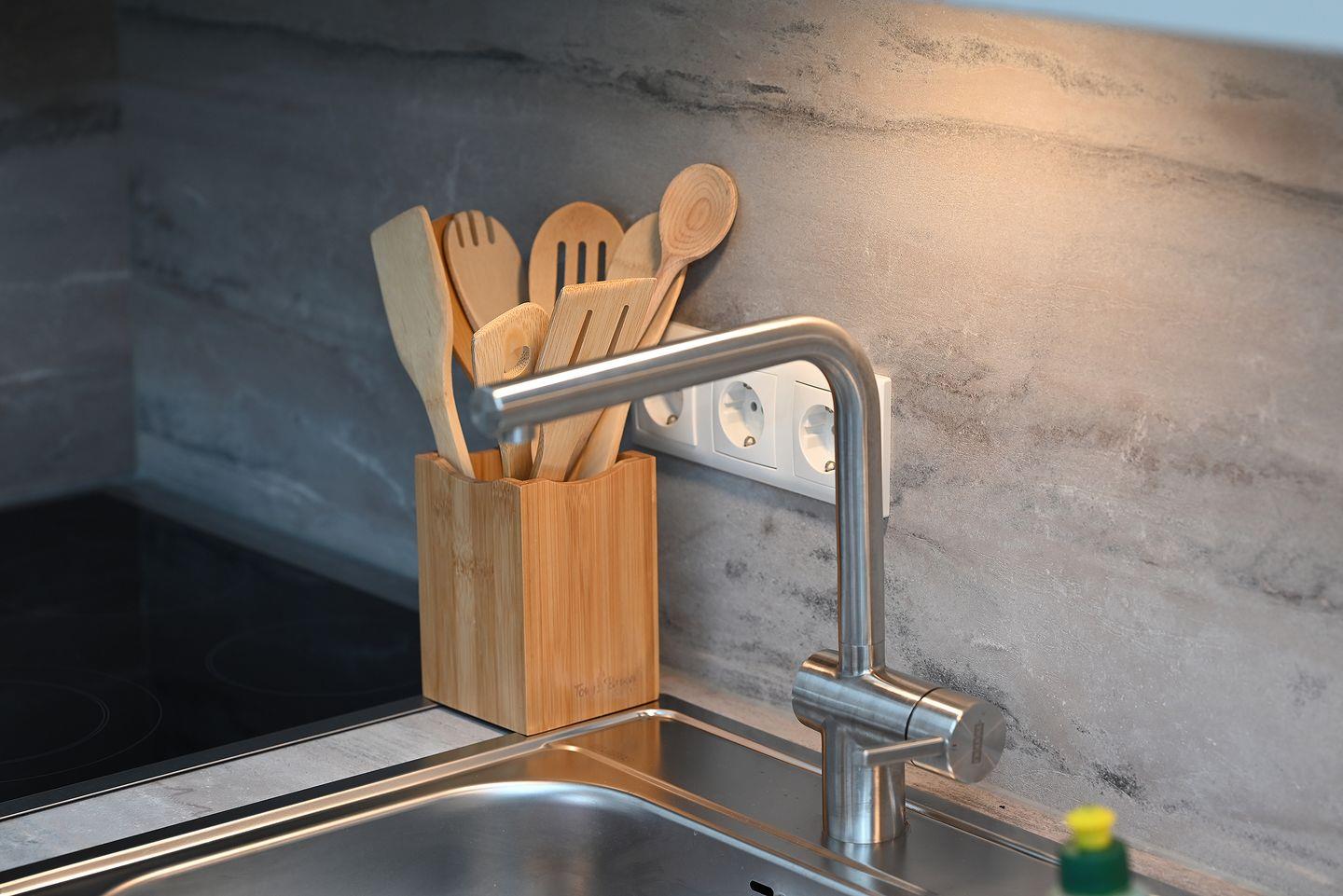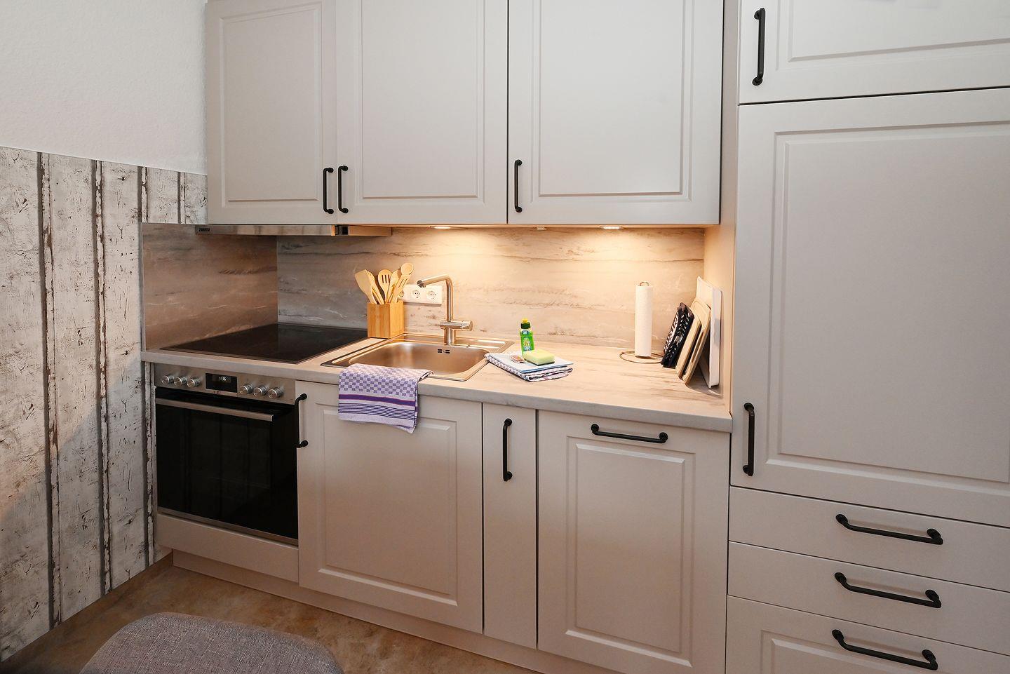 Es erwartet Sie eine neue Küchenzeile, mit allem was Sie brauchen um Ihre Leckereien zubereiten zu können. Geschirrspüler, Backofen und Gefrierfach sind ebenso vorhanden.