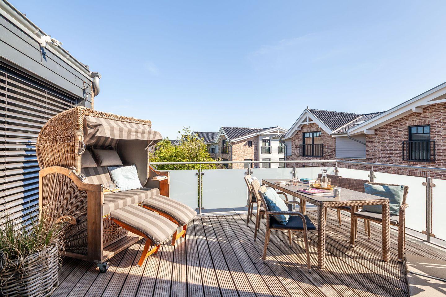 Dieses stilvoll eingerichtete Loft bietet Platz für bis zu 4 Personen und verfügt über 2 gemütliche Schlafzimmer, ideal für Familien oder Paare. Ein Highlight ist die großzügige Dachterrasse, auf der Sie die frische Nordseeluft genießen und entspannte Stunden im Strandkorb verbringen können.