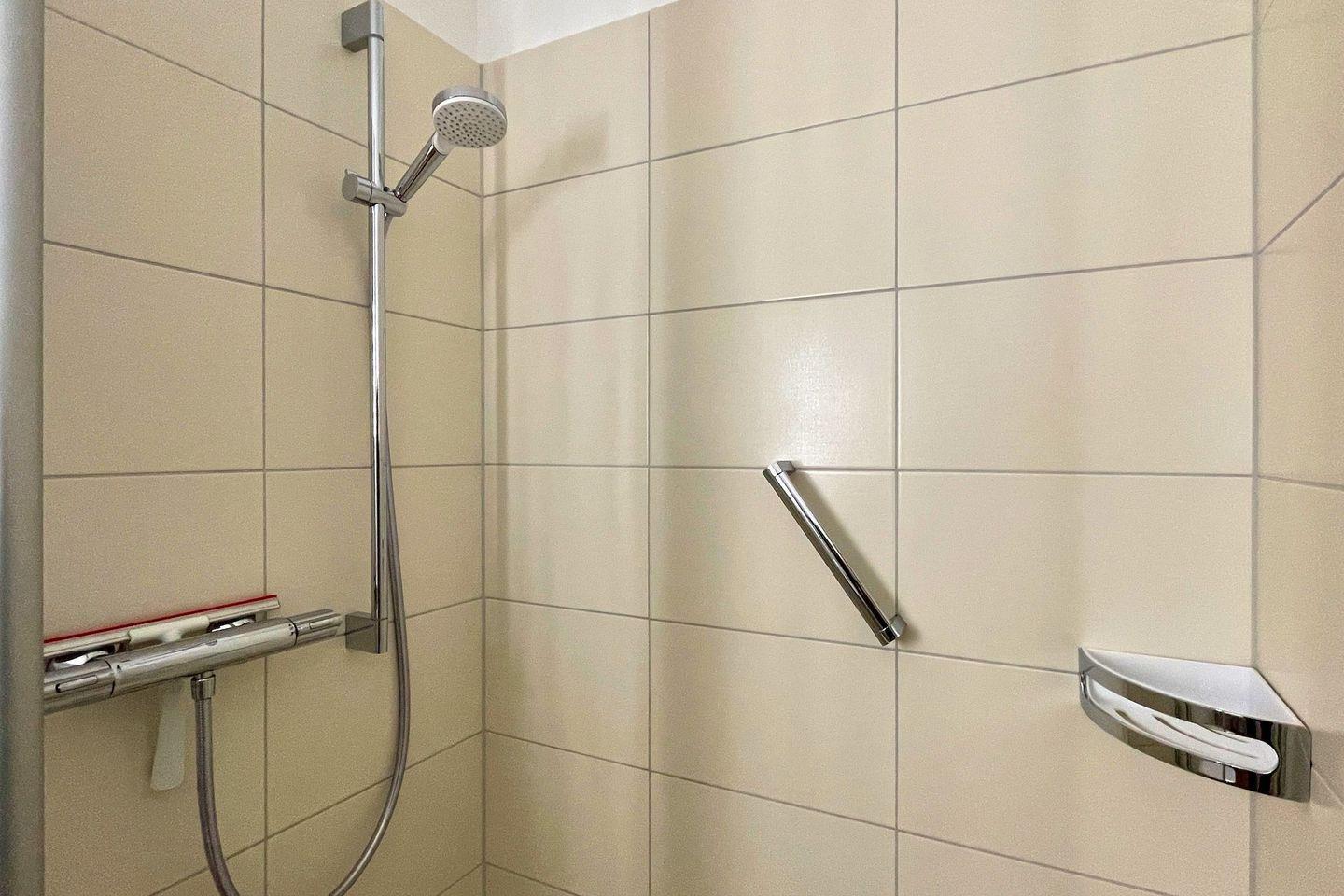 Das Bad verfügt über eine Dusche/WC. Vom Wohnbereich gelangen Sie auf die Süd-West Terrasse. Das Schlafzimmer verfügt über ein Doppelbett.