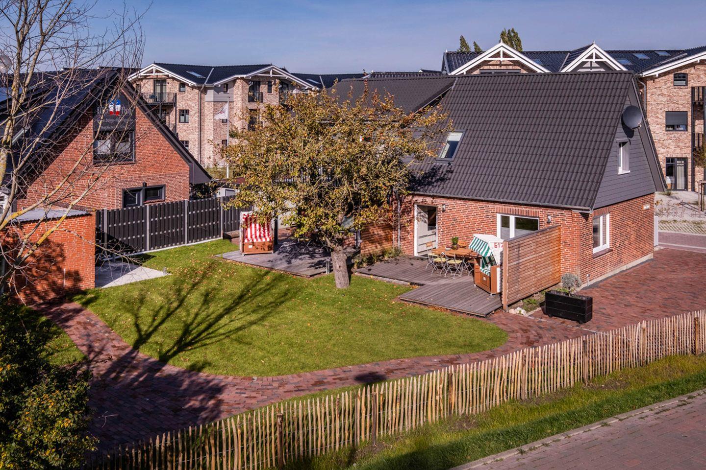 Willkommen in der gemütlichen Ferienwohnung „Goordenuv“, einem einladenden Rückzugsort in Büsum, direkt am Deichaufgang, der perfekte für Platz für einen erholsamen und entspannten Familienurlaub. Mit einer idealen Größe von ca. 40 m² bietet diese charmante Unterkunft Platz für bis zu vier Personen, Die Wohnung befindet sich im Erdgeschoss eines gepflegten Hauses mit einem schönen Ambiente. Hier können Sie auf der großen Holzterrasse, im Garten unter dem großen alten Apfelbaum entschleunigen. Hier sind Sie ganz ungestört. Für jedes Familienmitglied findet sich ein Plätzchen zum Erholen. Der gemütlich eingerichtete Wohnbereich mit Sofa und Sessel, Fernseher, Spielen, Büchern sowie Stühlen und Tisch und offener Küche lädt zum Entspannen, Spielen oder Kochen ein. Die hochwertige Ausstattung der modernen Küche umfasst unter anderem ein Induktionskochfeld, einen Backofen, einen Kühlschrank mit Gefrierfach sowie eine Spülmaschine. Dank einer Vielzahl von Küchenutensilien, einer Kaffeemaschine, Toaster und einem Wasserkocher können Sie Ihre Lieblingsgerichte im Handumdrehen zubereiten und durch den direkten Ausgang auf die einladende Südwest-Terrasse kann der Tag gleich mit einem schönen und gemütlichen Frühstück im Garten starten und Pläne für den Tag geschmiedet werden oder die Kinder gehen schnell über den Deich auf den großen Spielplatz zum Toben. Weiter befinden sich in der Wohnung ein Schlafzimmer mit Doppelbett (180x200cm) und Fernseher, ein Zimmer mit Etagenbett (100x200cm) mit großem Kleiderschrank. Das moderne Tageslicht-Bad ist mit einer bodengleichen Dusche, einem Waschbecken und einem WC ausgestattet sowie einem Handtuchheizkörper und vielen Ablagemöglichkeiten. Es bietet alles, was Sie für einen erfrischenden Start in den Tag benötigen. Alle Zimmer verfügen über eine Fußbodenheizung