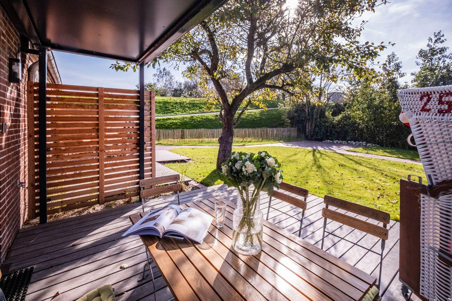 Zudem stehen Ihnen ein Privatparkplatz, Gartenmöbel und ein eigener Strandkorb zur Verfügung, damit Sie sich vollends wohlfühlen können. Die Wohnung ist nicht nur Nichtraucher-freundlich, sondern erfüllt auch alle Auflagen für einen entspannten Aufenthalt. Für Ihre Fahrräder ist ein Gartenhaus vorhanden, in dem Sie auch Stromanschlüsse für das Laden ihrer E-Bikes finden. Einen Grill und Sonnenliegen zur Allgemeinnutzung finden Sie ebenfalls in dem Gartenhaus.