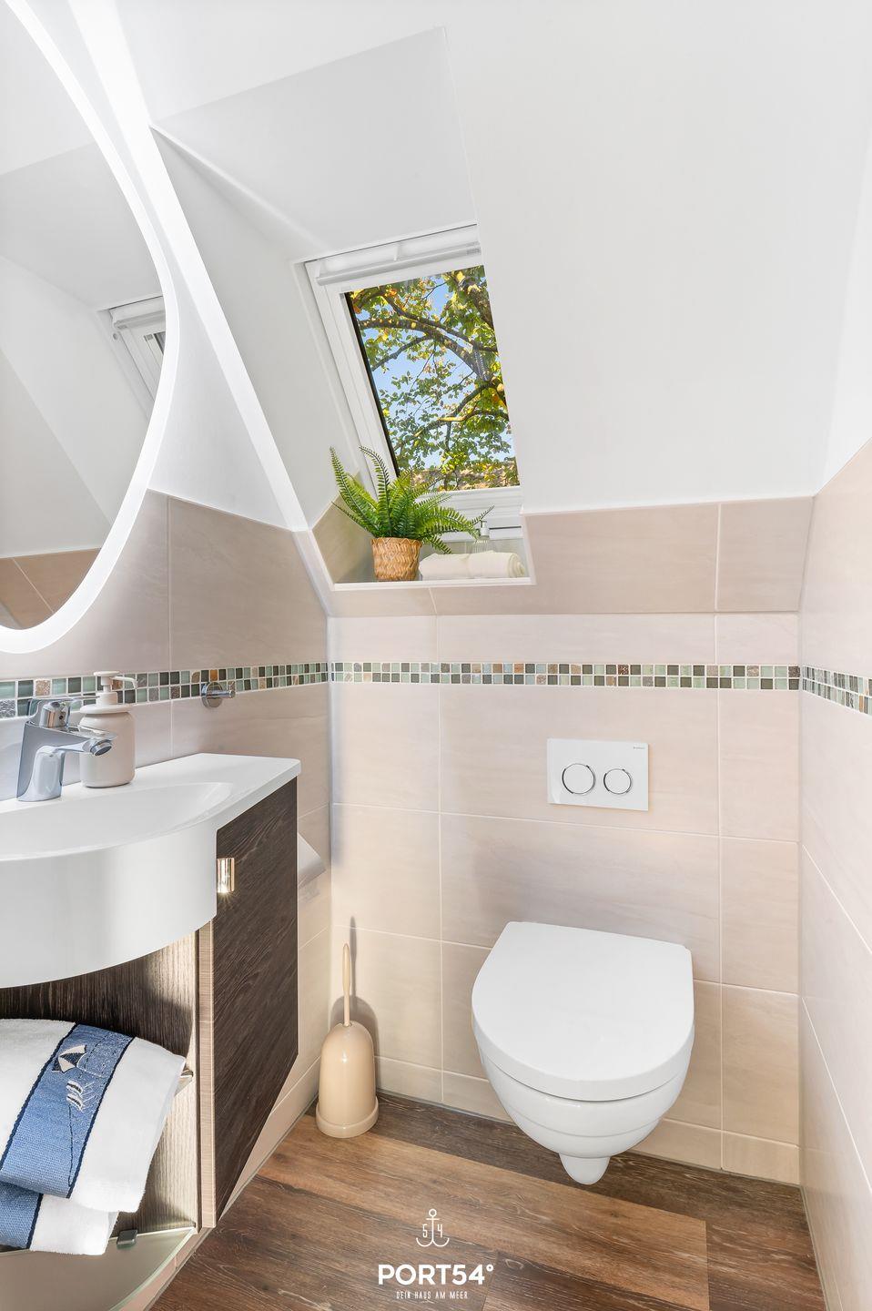 Das Badezimmer ist modern und mit einer Dusche, WC sowie einem Föhn ausgestattet. Zusätzlich steht Ihnen ein separates Gäste-WC zur Verfügung, was zusätzlichen Komfort bietet. Besonders hervorzuheben ist die große, private Terrasse, die zum Verweilen im Freien einlädt. Hier können Sie den Tag bei einem Frühstück in der Sonne beginnen oder den Abend bei einem Glas Wein ausklingen lassen.