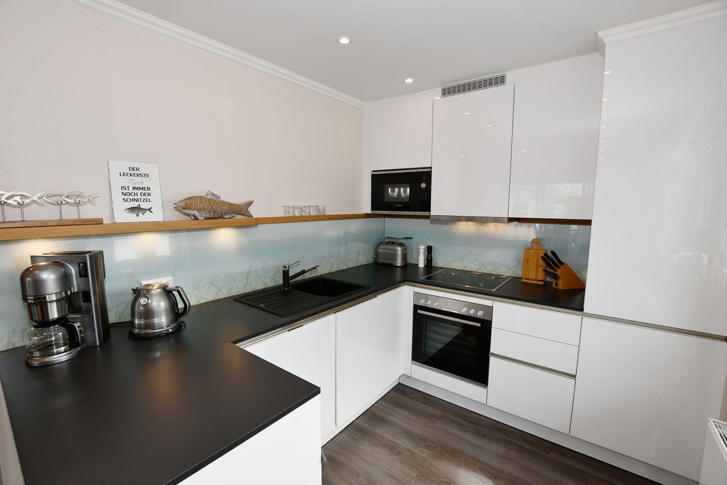 Die offene Küche ist mit allen notwendigen Geräten versehen, darunter ein Cerankochfeld, ein Backofen, eine Spülmaschine und eine Mikrowelle. So können Sie problemlos Ihre Lieblingsgerichte zubereiten. Ein Kühlschrank mit Gefrierfach, eine Kaffeemaschine und ein Wasserkocher runden das Angebot ab. Hier wird Kochen zum Vergnügen!
