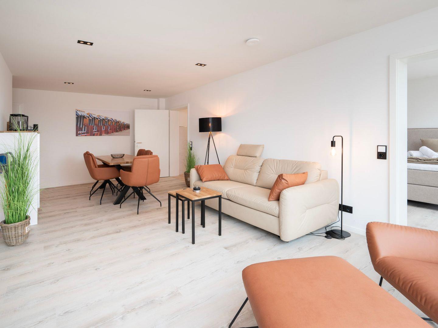 Willkommen in der Inseltörn Wohnung 4 – Ihrem perfekten Rückzugsort für einen unvergesslichen Urlaub an der Nordseeküste! Diese großzügige und modern eingerichtete Ferienwohnung erstreckt sich über 100 Quadratmeter und ist ideal für Familien oder Gruppen von bis zu fünf Personen. Ihre Erholung beginnt bereits beim Betreten dieser lichtdurchfluteten Wohnung, die mit hochwertigen Möbeln und liebevollen Details ausgestattet ist.
