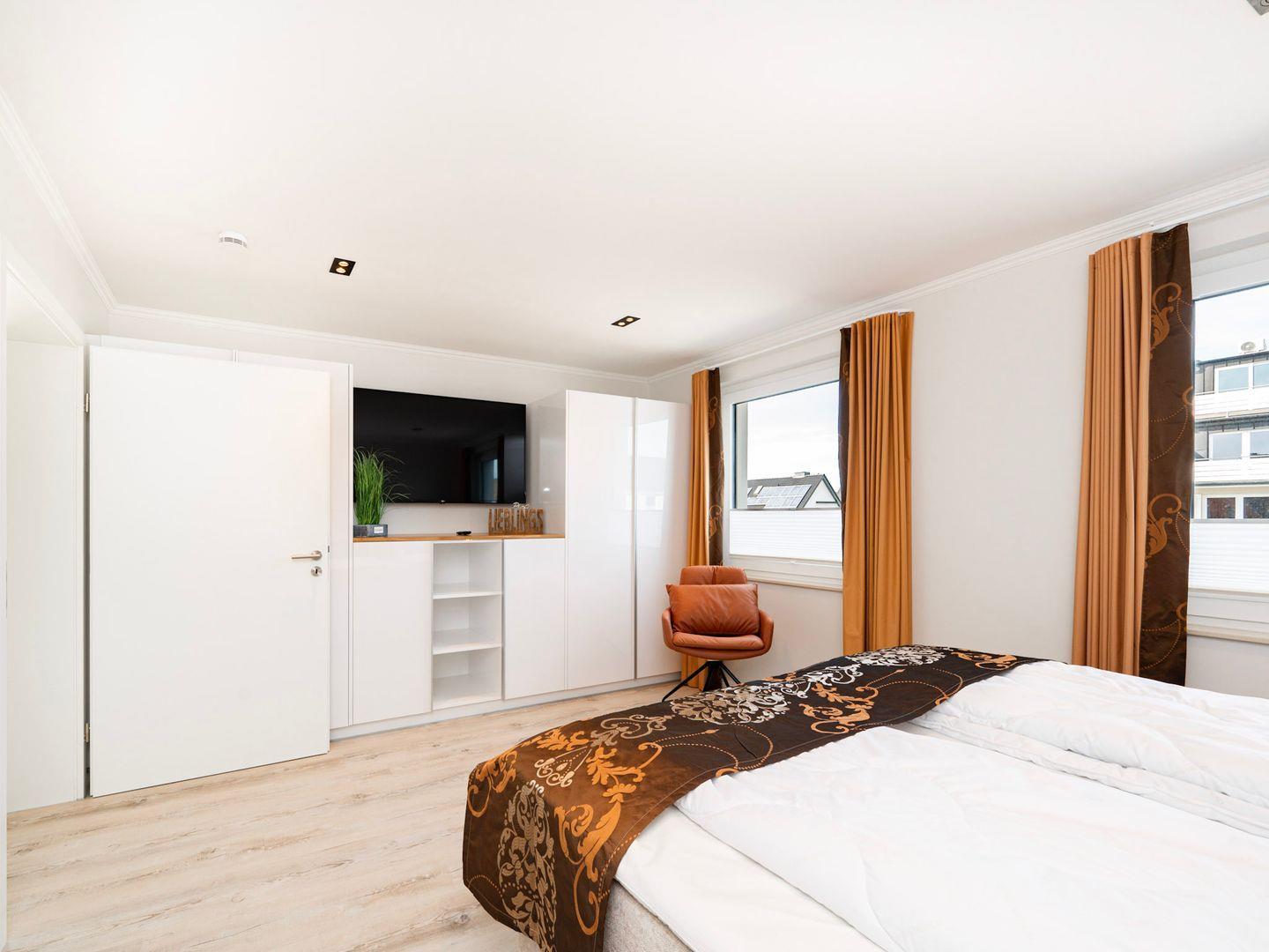 Die Wohnung ist für Allergiker geeignet und mit Fußbodenheizung ausgestattet, was für ein angenehmes Raumklima sorgt. Besonders schön ist der eigene Balkon, auf dem Sie bei einer Tasse Kaffee oder einem Glas Wein die frische Nordseeluft genießen können. Der modernen Einrichtung sind keine Grenzen gesetzt: Gemütliche Sofas und Sessel im Wohnzimmer, ein großer Esstisch und sogar ein TV in jedem der drei Zimmer sorgen für Komfort und Unterhaltung.