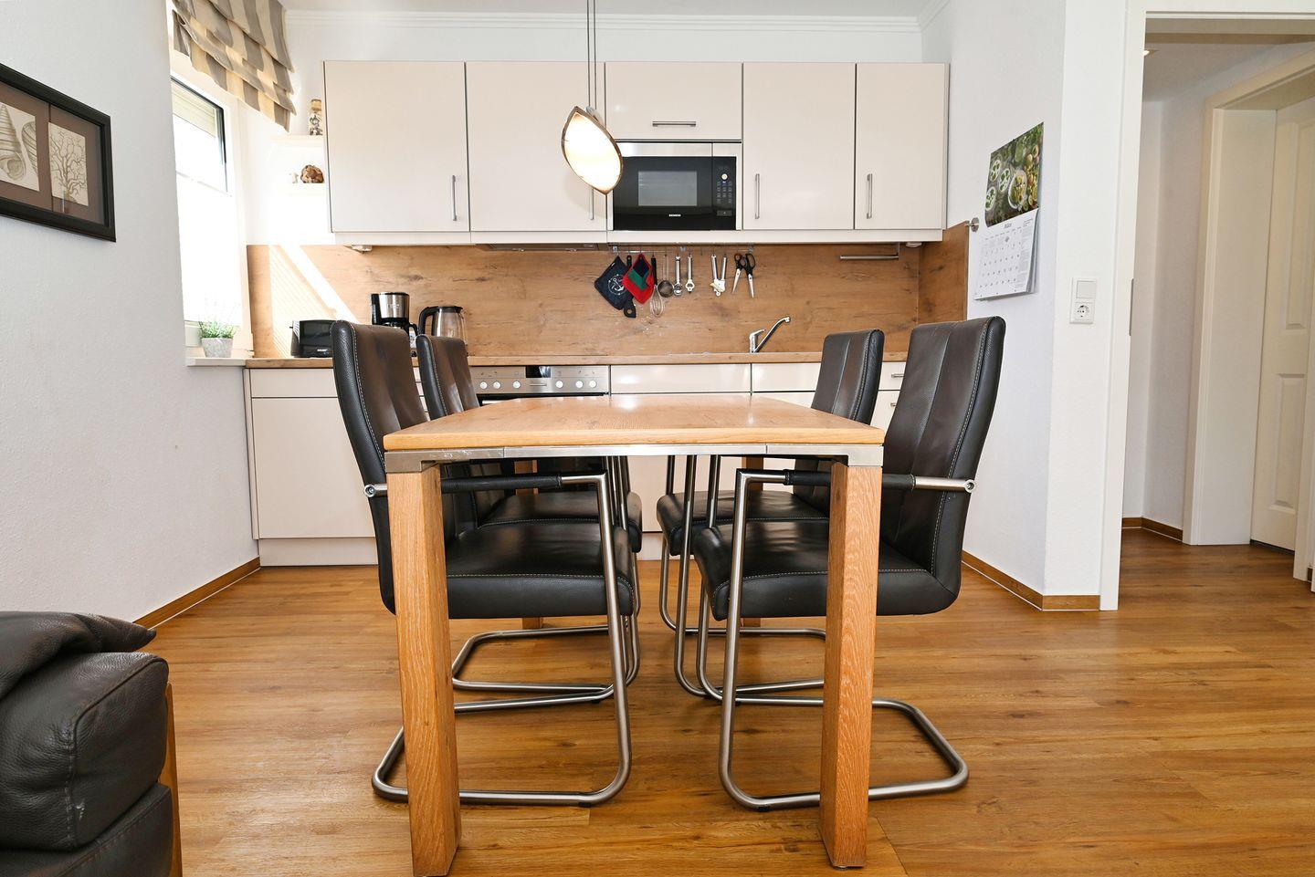 Fischer's Hus Wohnung 4 wurde 2021 renoviert, um modernste Standards zu bieten und Ihnen einen angenehmen Aufenthalt zu ermöglichen. Hier bleibt kein Wunsch unerfüllt – ob beim gemeinsamen Kochen, beim Spiele-Abend oder beim Entspannen auf der Terrasse.