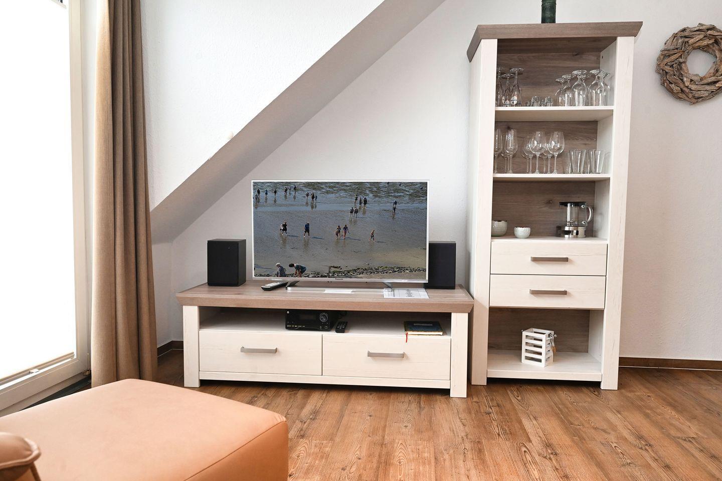Mit einer Größe von 35 m² bietet die Ferienwohnung Platz für bis zu drei Gäste und überzeugt durch eine gelungene Kombination aus Komfort und Gemütlichkeit. Nach einem erlebnisreichen Tag am Strand können Sie sich auf das helle Wohn-Esszimmer zurückziehen. Hier erwartet Sie eine stilvolle Sofaecke, die zum Entspannen und Verweilen einlädt. Zudem ist die Wohnung allergikergeeignet, so dass Sie sich rundum wohlfühlen können.