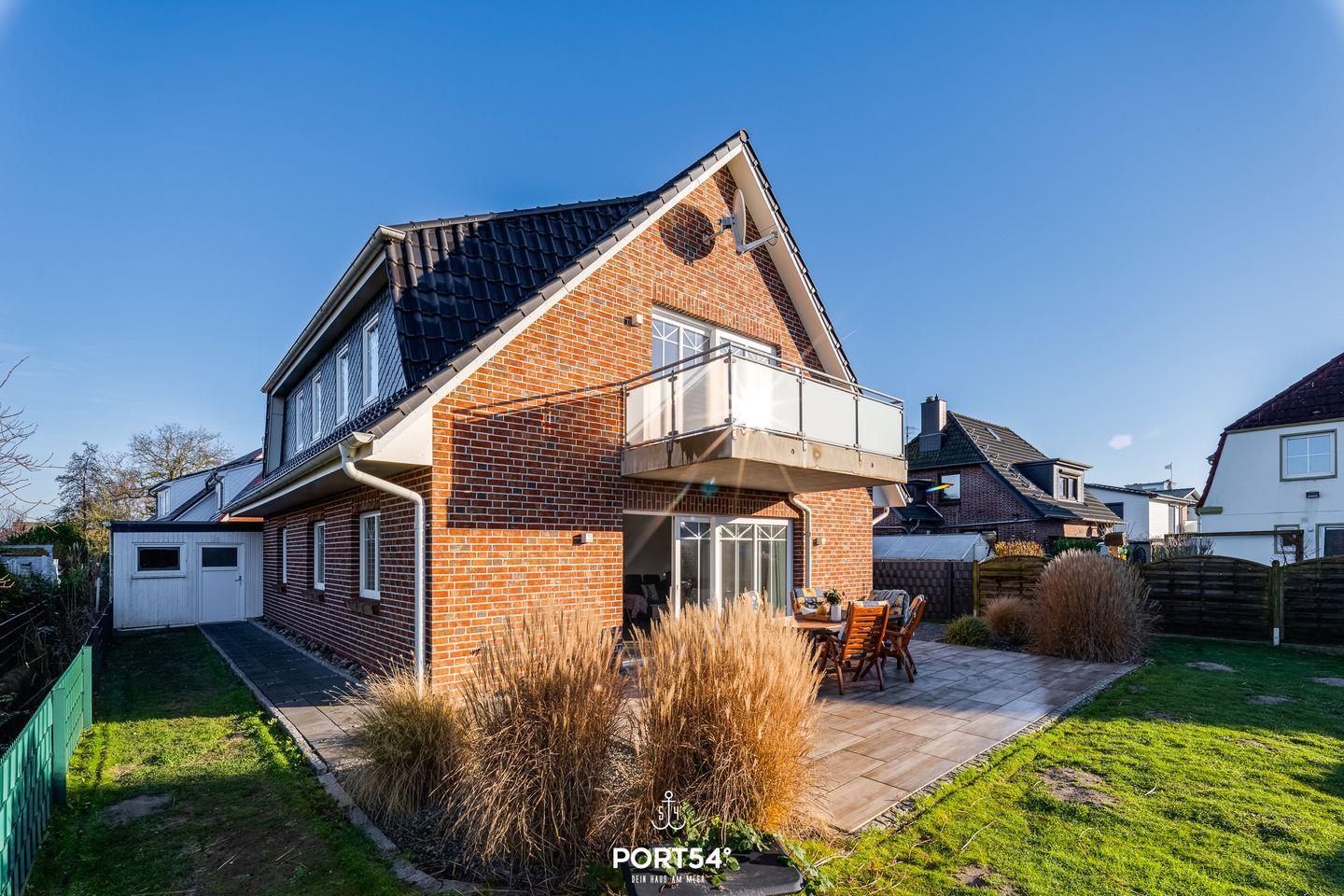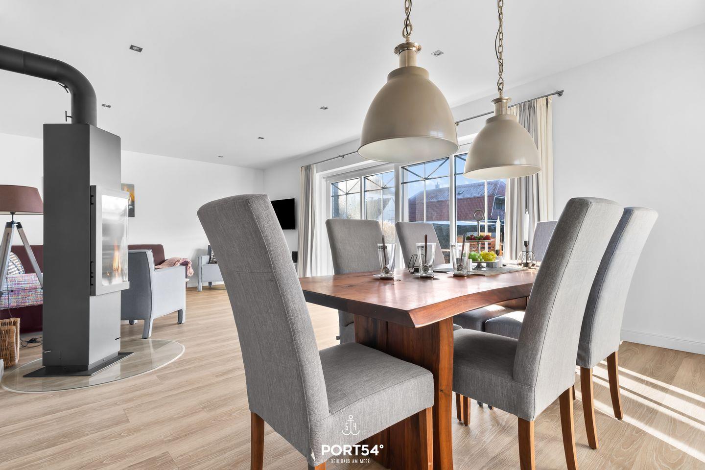 Ein Highlight des Ferienhauses ist die malerische Terrasse mit Gartenblick, die zum Verweilen oder Grillen an lauen Sommerabenden einlädt. Hier finden Sie auch Sonnenliegen, die zu entspannten Stunden unter freiem Himmel einladen. Die Terrasse ist der perfekte Ort, um die frische Nordseeluft zu genießen oder die Kinder im sicheren Garten zu beobachten.