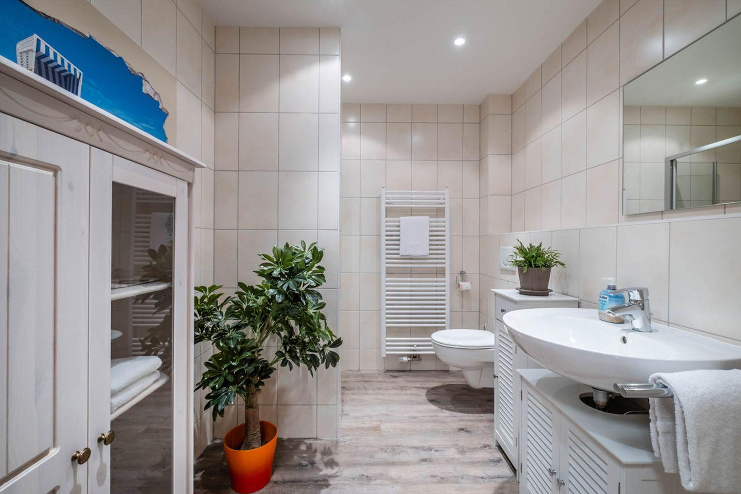 Sanitär: Duschbad mit ebenerdiger Dusche, Haar-Föhn, Kosmetikspiegel