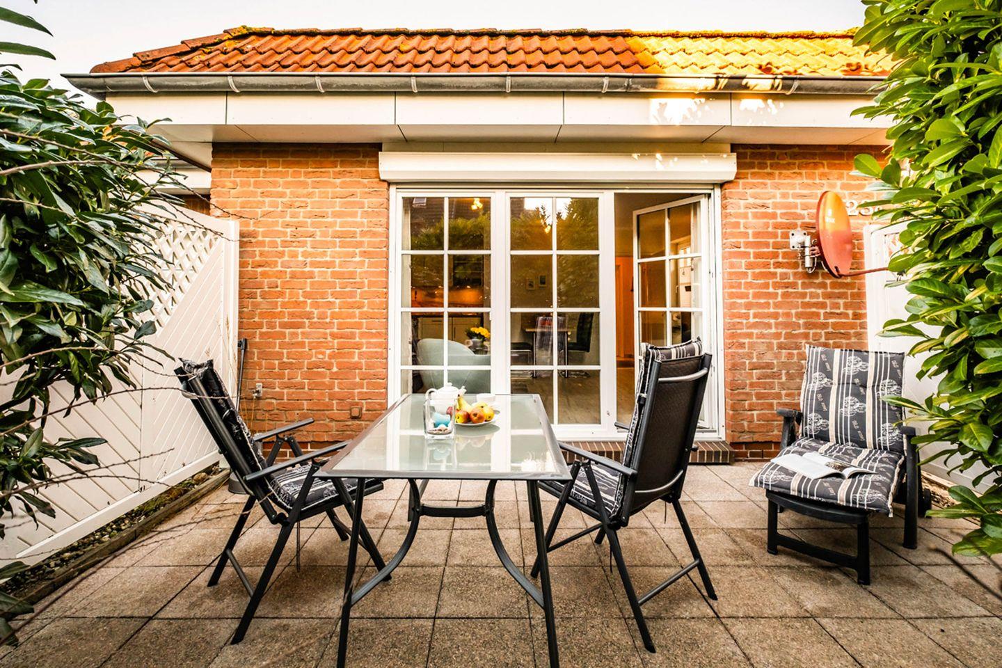 Ein weiteres Highlight ist die private Terrasse, auf der Sie die frische Meeresluft genießen und entspannte Stunden im Freien verbringen können. Gartenmöbel sind vorhanden, sodass Sie Ihr Frühstück im Freien einnehmen oder einen schönen Abend bei einem Glas Wein ausklingen lassen können.