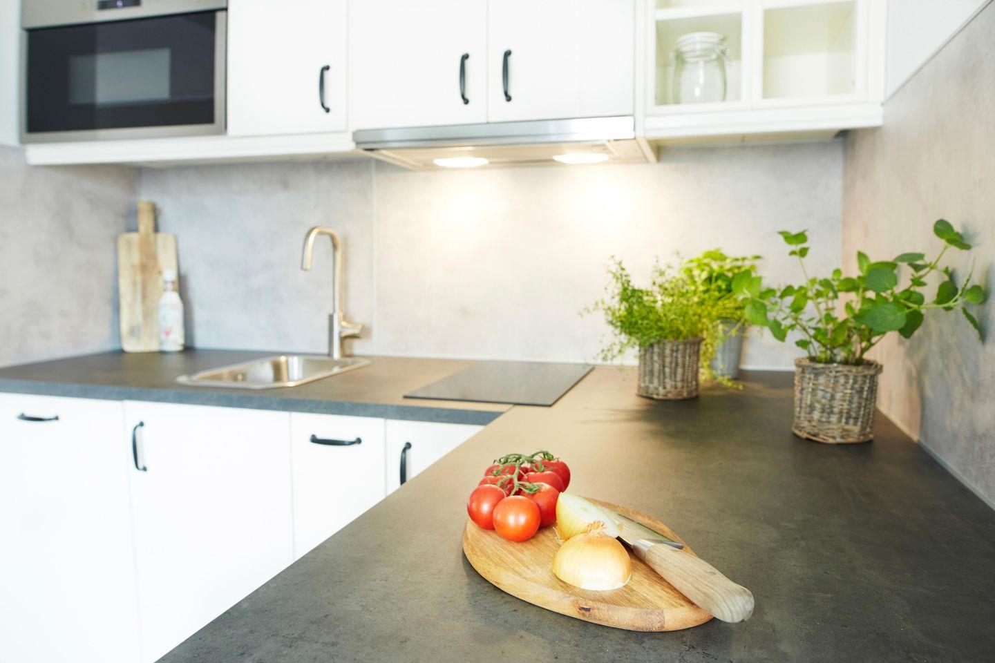 Die geschlossene Küche ist komplett ausgestattet und lässt kaum Wünsche offen. Neben einem geräumigen Kühlschrank und einem Ceran-Herd finden Sie auch eine Spülmaschine sowie sämtliche Küchenutensilien, die Sie für die Zubereitung eigener Mahlzeiten benötigen. Eine Kaffeemaschine und ein Wasserkocher stehen ebenfalls zur Verfügung, um Ihren Tag mit einem frisch gebrühten Kaffee zu beginnen. Das Esszimmer mit Esstisch und Stühlen ist der perfekte Ort, um gemeinsam zu speisen und den Aufenthalt zu genießen.