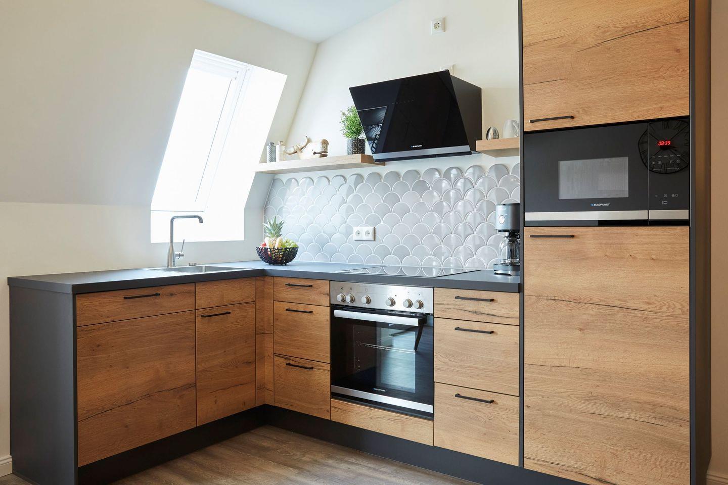 Das Kattegat Apartment 24 verfügt über eine Wohnfläche von 38 m² und ist ideal für Paare oder Alleinreisende, die Ruhe und Komfort in einer stilvollen Umgebung suchen. Mit einem Schlafzimmer, das Platz für zwei Personen bietet, und einem modern ausgestatteten Badezimmer, ist es der optimale Ort für einen entspannten Aufenthalt. Der offene Wohnbereich, der mit einer gemütlichen Sofaecke, einem Esstisch und einem Fernseher ausgestattet ist, lädt zum Verweilen ein und bietet gleichzeitig die Möglichkeit, sich kulinarisch auszutoben. Die vollausgestattete Küche umfasst unter anderem einen Ceranherd, einen Kühlschrank mit Gefrierfach, einen Geschirrspüler, eine Mikrowelle, einen Toaster und eine Kaffeemaschine, sodass Sie jederzeit Ihre Lieblingsgerichte zubereiten können.