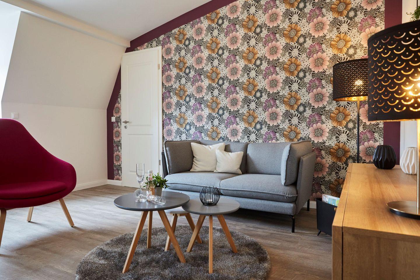 Die geschmackvoll eingerichtete Sofaecke im Wohnzimmer lädt zum Entspannen ein. Zudem stehen Ihnen ein Fernseher, ein Radio und WLAN zur Verfügung, sodass Sie auch während Ihres Aufenthalts in Kontakt mit der Außenwelt bleiben können. Ein Essbereich ist ebenfalls vorhanden und bietet die perfekte Umgebung für gesellige Abende oder romantische Dinner.