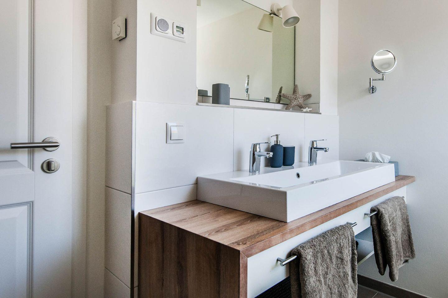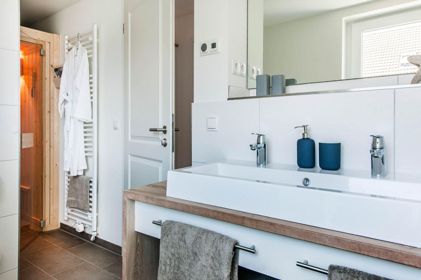 Sanitär: 2 Duschbäder mit ebenerdiger Dusche, Haar-Föhn, Kosmetikspiegel, Sauna