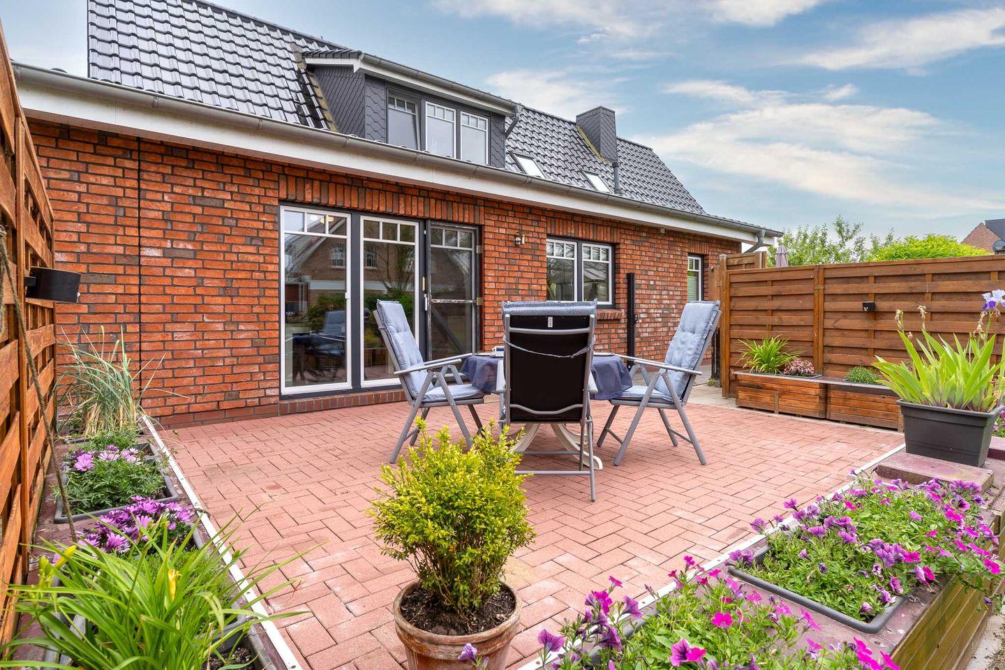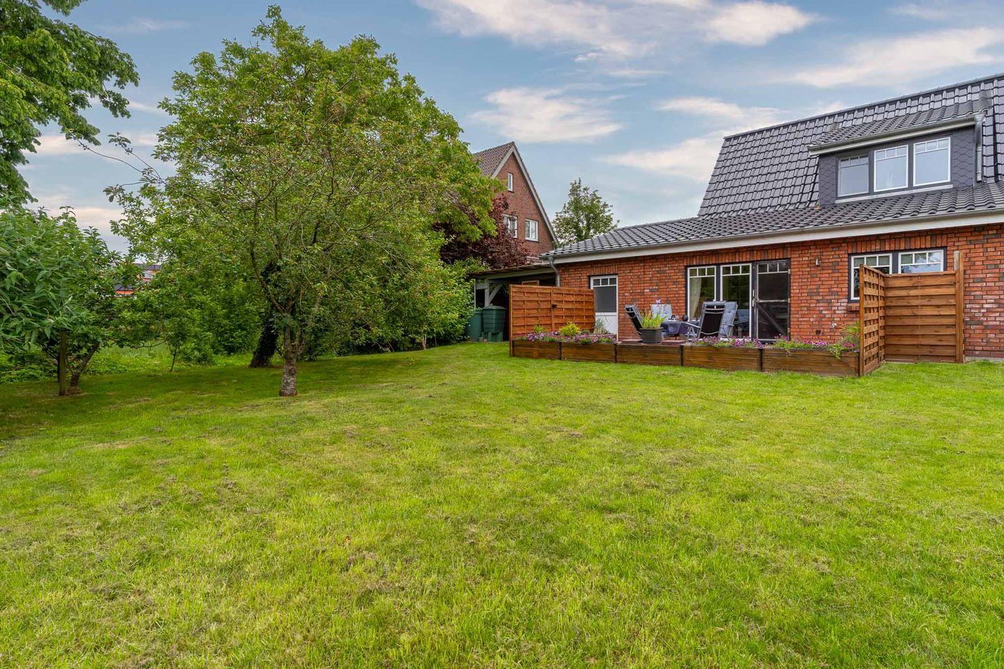 Auf Ihrer Terrasse können Sie die Ruhe genießen oder sich in der Liegewiese entspannen. Der Garten ist ein Ort, der zum Entspannen und Spielen einlädt, während Sie den Blick ins Grüne genießen.