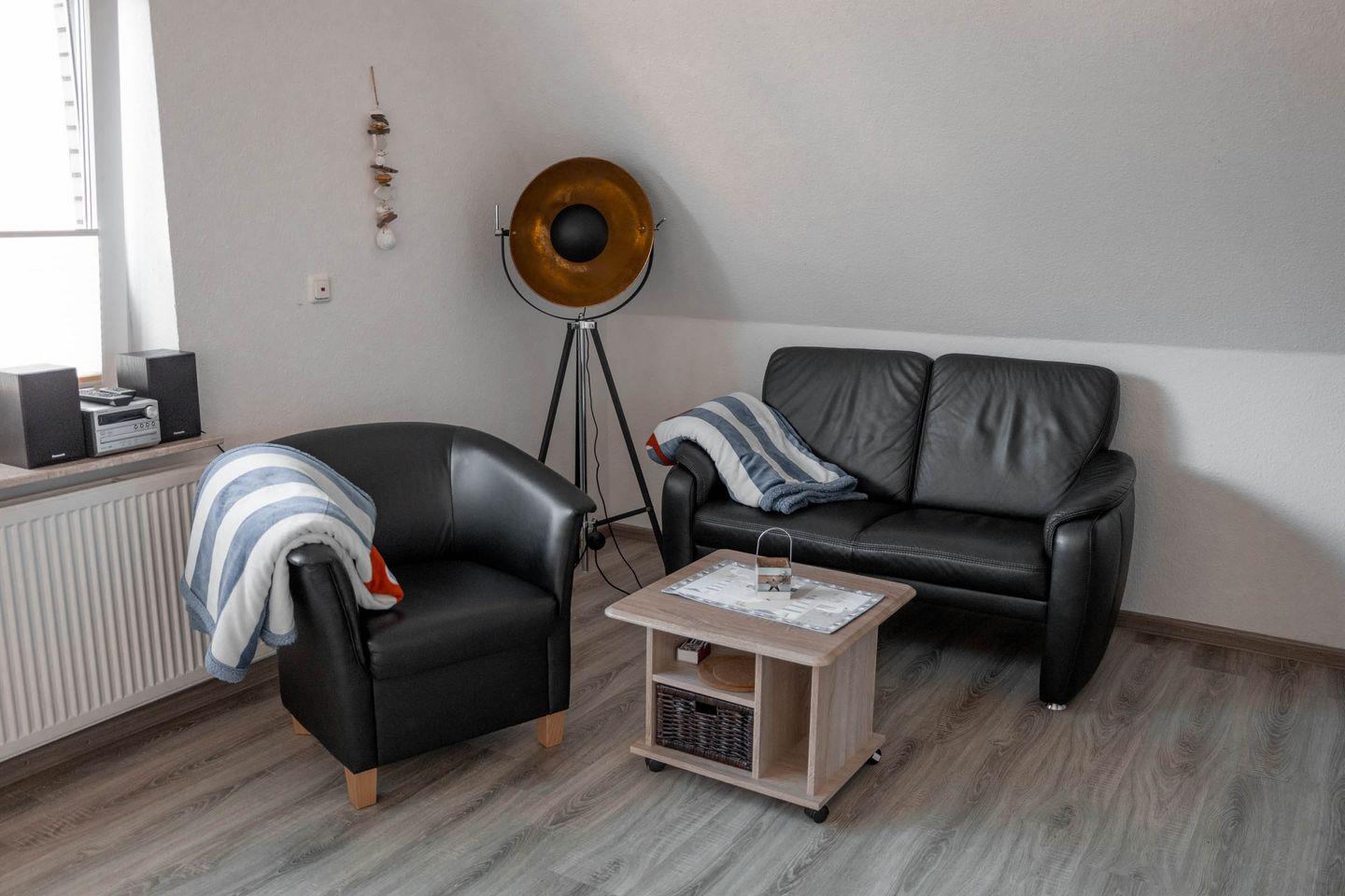 Das modern eingerichtete Apartment verfügt über zwei Zimmer, davon ein separates Schlafzimmer, das mit bequemen Schlafmöglichkeiten ausgestattet ist. Der helle und gemütliche Wohnbereich lädt mit einem Sofa und einem Sessel zum Entspannen ein. Zwei Fernseher sorgen für Unterhaltung und durch das vorhandene WLAN bleiben Sie stets mit dem Internet verbunden. Für angenehme Temperaturen in jeder Jahreszeit steht eine Heizung zur Verfügung.