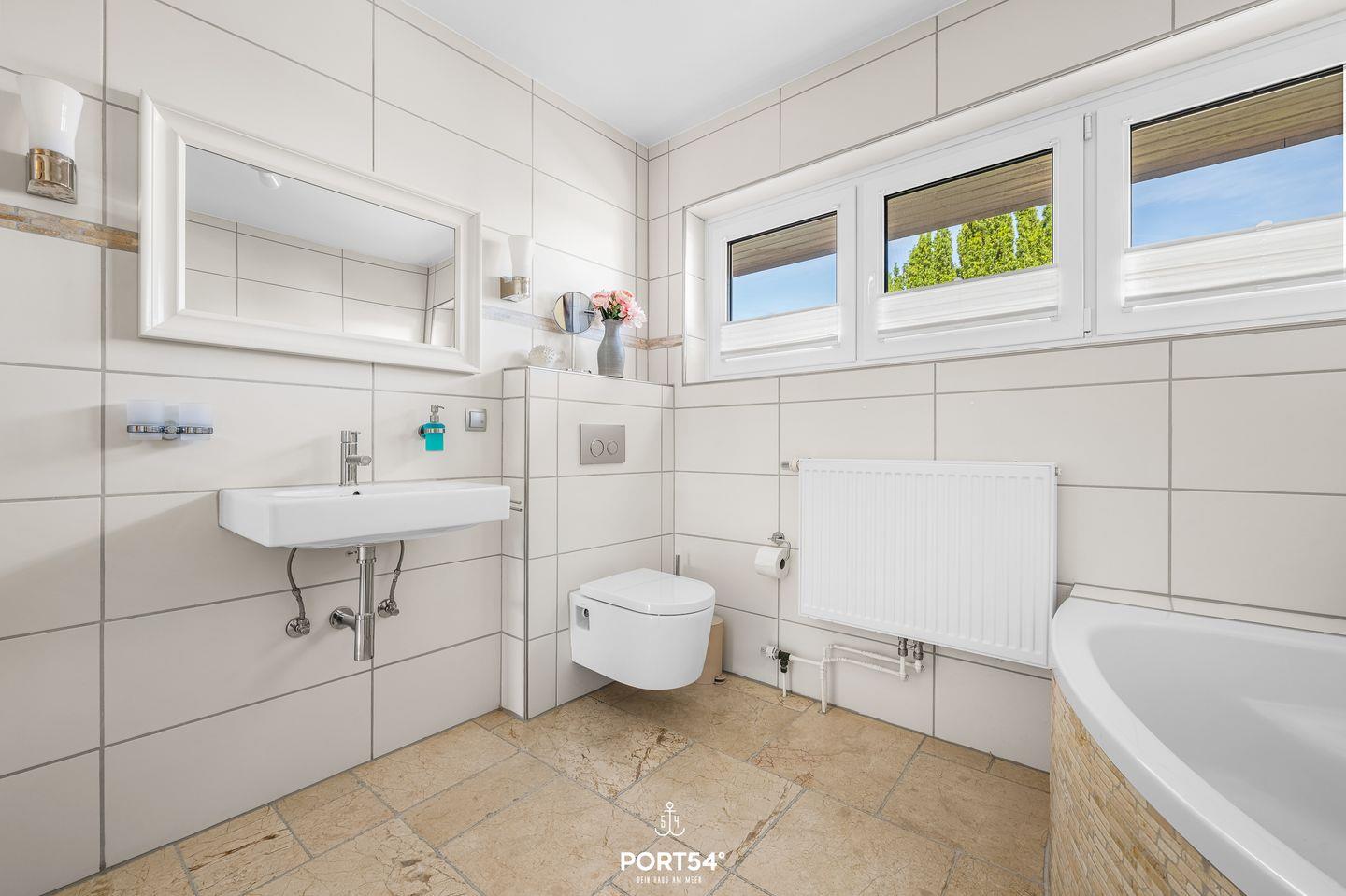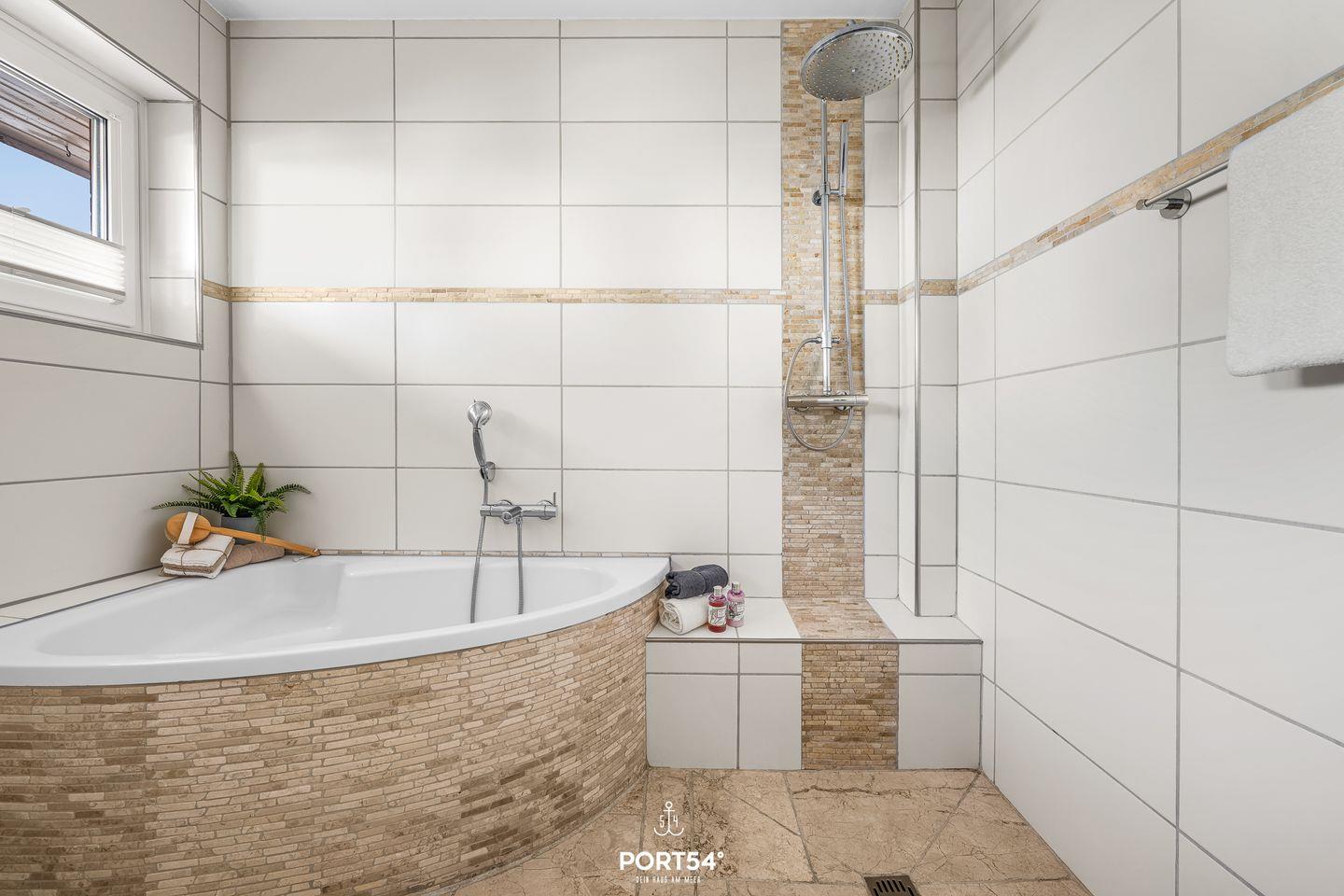 Ein Bad mit Regendusche und Badewanne, ein weiteres im OG mit Badewanne und Duschfunktion.