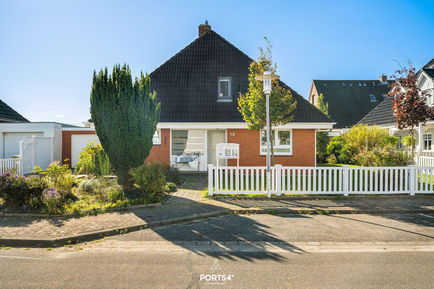 Das etwa 800 m² große Grundstück bietet reichlich Platz und Privatsphäre. Genießen Sie sonnige Stunden im Garten mit Gartenmöbeln, Liegewiese, überdachter Terrasse, Balkon, Markisen und einem Strandkorb. Der Blick auf die angrenzenden Weiden sorgt für echtes Nordsee-Feeling.