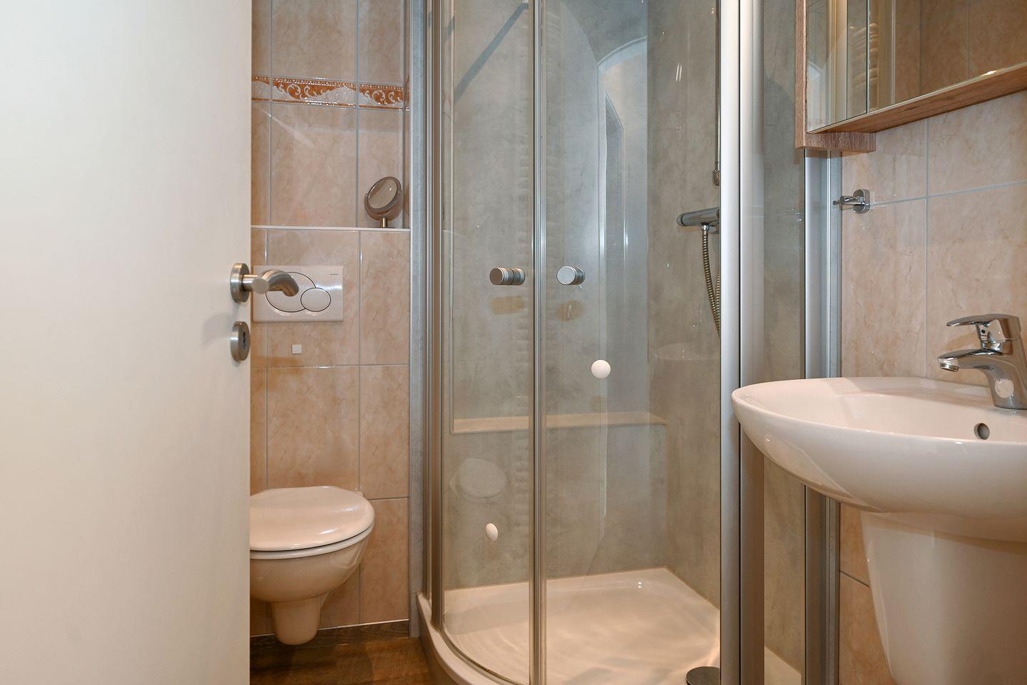Das modern eingerichtete Badezimmer verfügt über eine Handtuchheizung und sorgt für ein angenehmes Wohlfühlambiente.