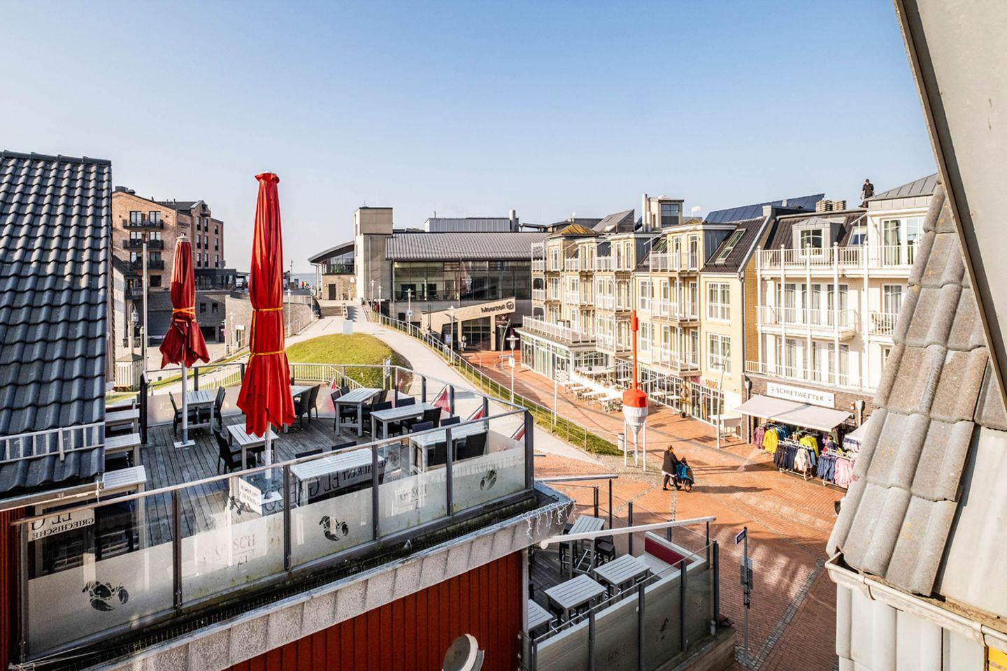 Das absolute Highlight dieser Wohnung ist der Logenplatz direkt am Fenster: Genießen Sie einen fantastischen Panoramablick auf die belebte Büsumer Fußgängerzone. Beobachten Sie das bunte Treiben bei einer Tasse Kaffee ganz entspannt aus der ersten Reihe. Da die Wohnung über keinen Balkon verfügt, holen wir Ihnen das pulsierende Leben durch die großen Fensterfronten direkt ins gemütliche Wohnzimmer.