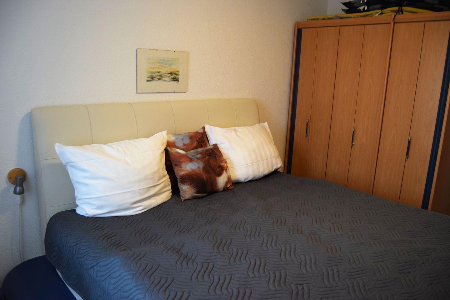 Das Schlafzimmer bietet Ihnen ein großes Doppelbett und einen Kleiderschrank. In der separaten Küche finden Sie alle wichtigen Kochutensilien.
